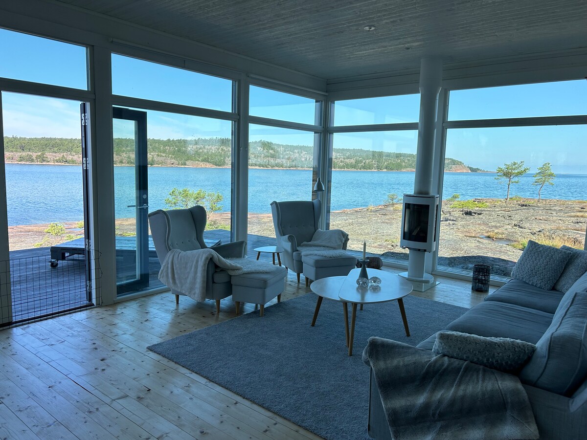 Cabaña de madera con hermosas vistas del estrecho de Färjsundet
