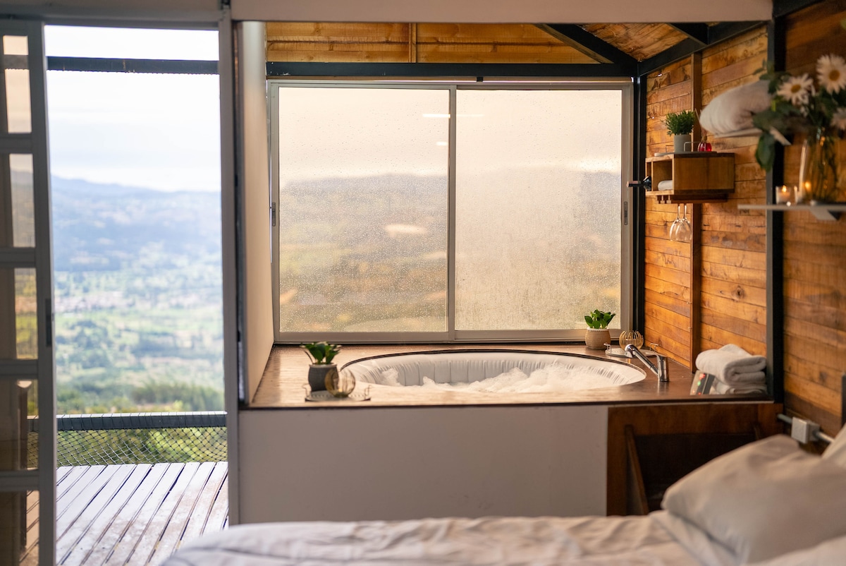 Cabaña Valle de la Laguna, Jacuzzi y vista al lago