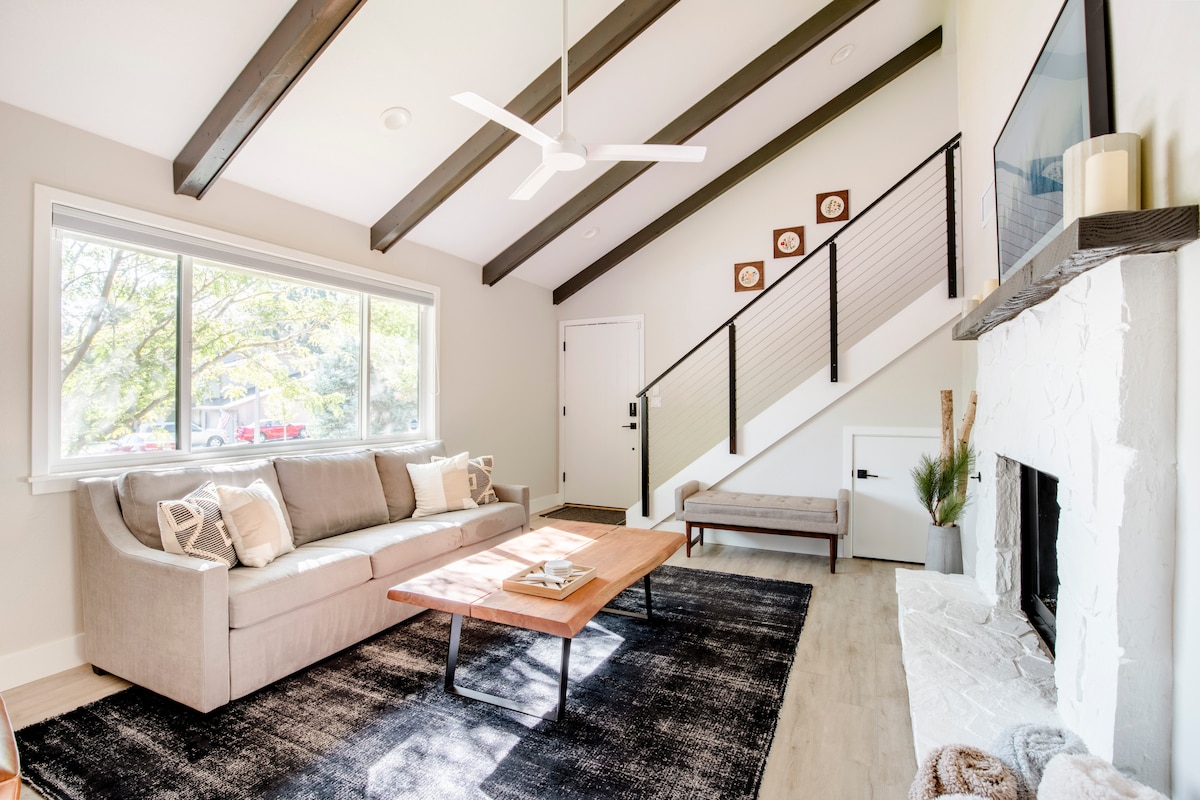 Soleado y moderno apartamento de 1 dormitorio con loft (colchón de suelo QN. en el loft) con capacidad para DOS personas en el distrito NOHO de Flagstaff. El techo de 14' de altura hace que el modesto espacio parezca mucho más grande. Hay mucho espacio para trabajar o relajarse. Gran cocina y baño de lujo. Camina hasta el centro de la ciudad o, si te quedas, nuestro alojamiento ofrece SmartTV y wifi. ¡Buffalo Park y un extenso sistema de senderos a 4 manzanas de distancia! La estación de esquí Snowbowl está a 30 minutos, el Gran Cañón a 75 minutos y Sedona a 40 minutos de nuestra puerta. ¡Base perfecta para tu aventura en el norte de Arizona!