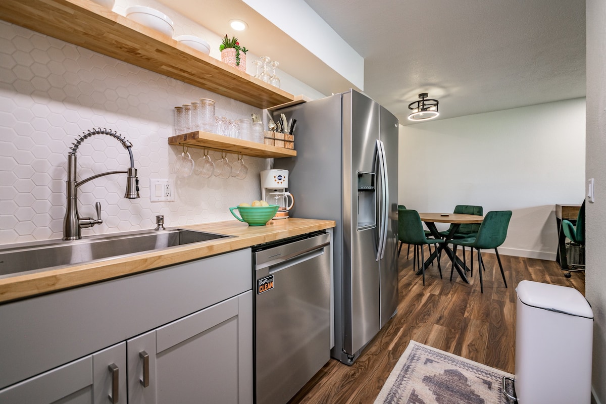 Como nativos de cuarta generación de Flagstaff, estamos orgullosos de ofrecer este espacio. Nueva construcción con un toque moderno pero cómodo. ¡Nueva bañera de hidromasaje! Cocina completa que incluye: estufa/horno, refrigerador (con máquina de hielo), microondas, lavavajillas, ollas y sartenes, platos, cubiertos, licuadora y tostadora. Café y té incluidos. Lavadora y secadora en la unidad. Un dormitorio con una cama tamaño king y espacio en el armario. Un baño completo. Sofá cama en el área de la sala de estar para huéspedes adicionales. Solo una nota, no permitimos mascotas