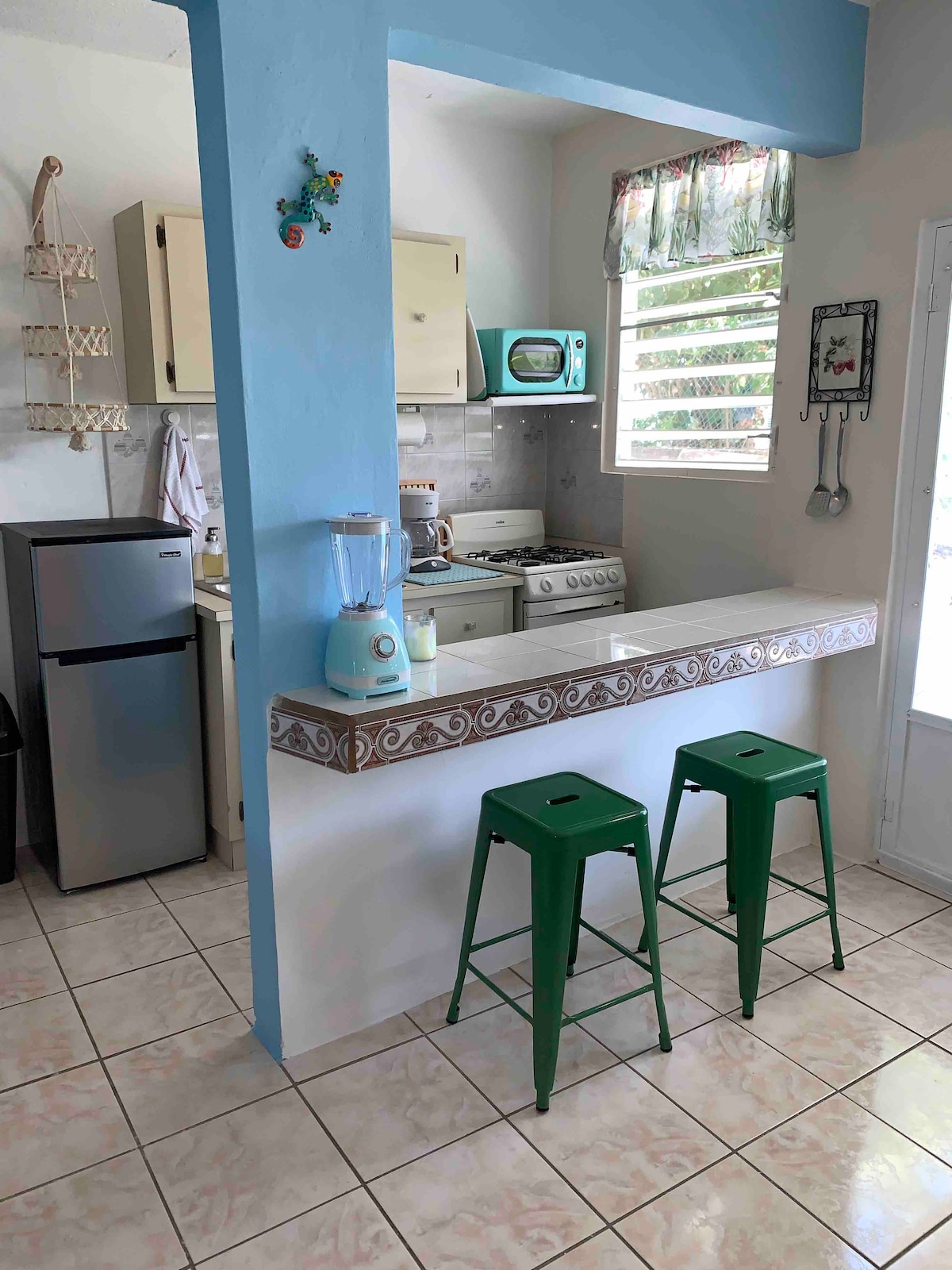 Luminoso, con brisa y justo al final de la colina, camina hasta la ciudad, luego vuelve a casa con vistas durante días. Este refugio privado de 2 dormitorios/2 dormitorios tiene aire acondicionado (queen + 2 camas individuales o king), una cocina completa, una sala de estar de distribución abierta y una terraza hecha para descansar al atardecer o tomar un café lento por la mañana con los pájaros. Vistas a la bahía, el océano y el valle por todas partes. Lavadora y secadora incluidas. Arte local y detalles cuidados en todas partes. MiraFlores es cómoda, colorida y tu base de operaciones perfecta en el paraíso.
