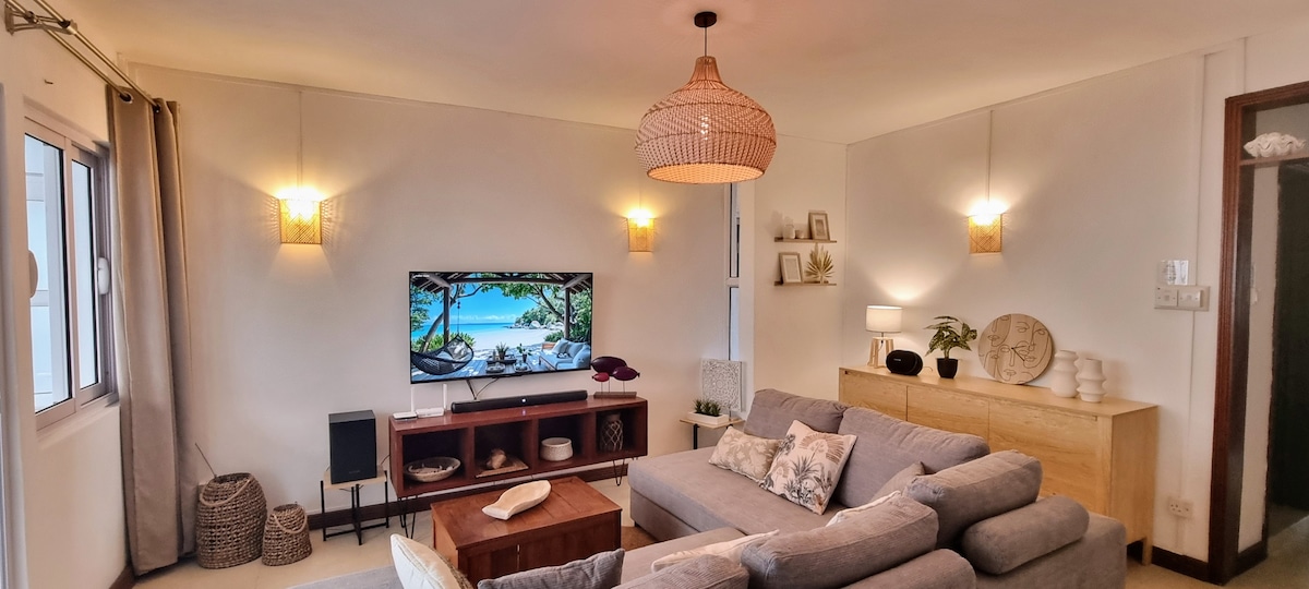 A spacious, stylish and modernly decorated 2 bedroom Condo in a secure complex. Ideally located for sun lovers with direct access to one of the best and longest beaches. Perfect for watching the beautiful sunsets either from the Condo balcony or the beach. Convenient base to explore the natural beauty of the island and get to know the Mauritian life. Convenient location, close to all amenities including shops, public transport, restaurants, bars and hotels are within walking distance.