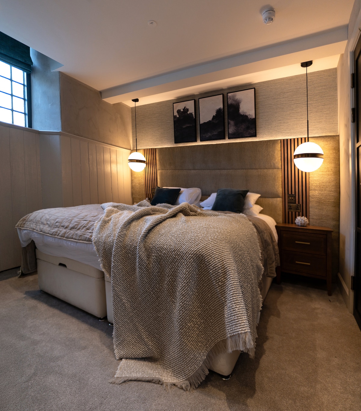 At The Old School House Manor, every bedroom has been designed as a private haven of calm and comfort. The interiors combine soft, neutral tones with elegant furnishings and luxury finishes—from plush headboards and crisp linens to subtle lighting and statement design touches. These bedrooms ensure every guest enjoys a stay that feels both special and serene.