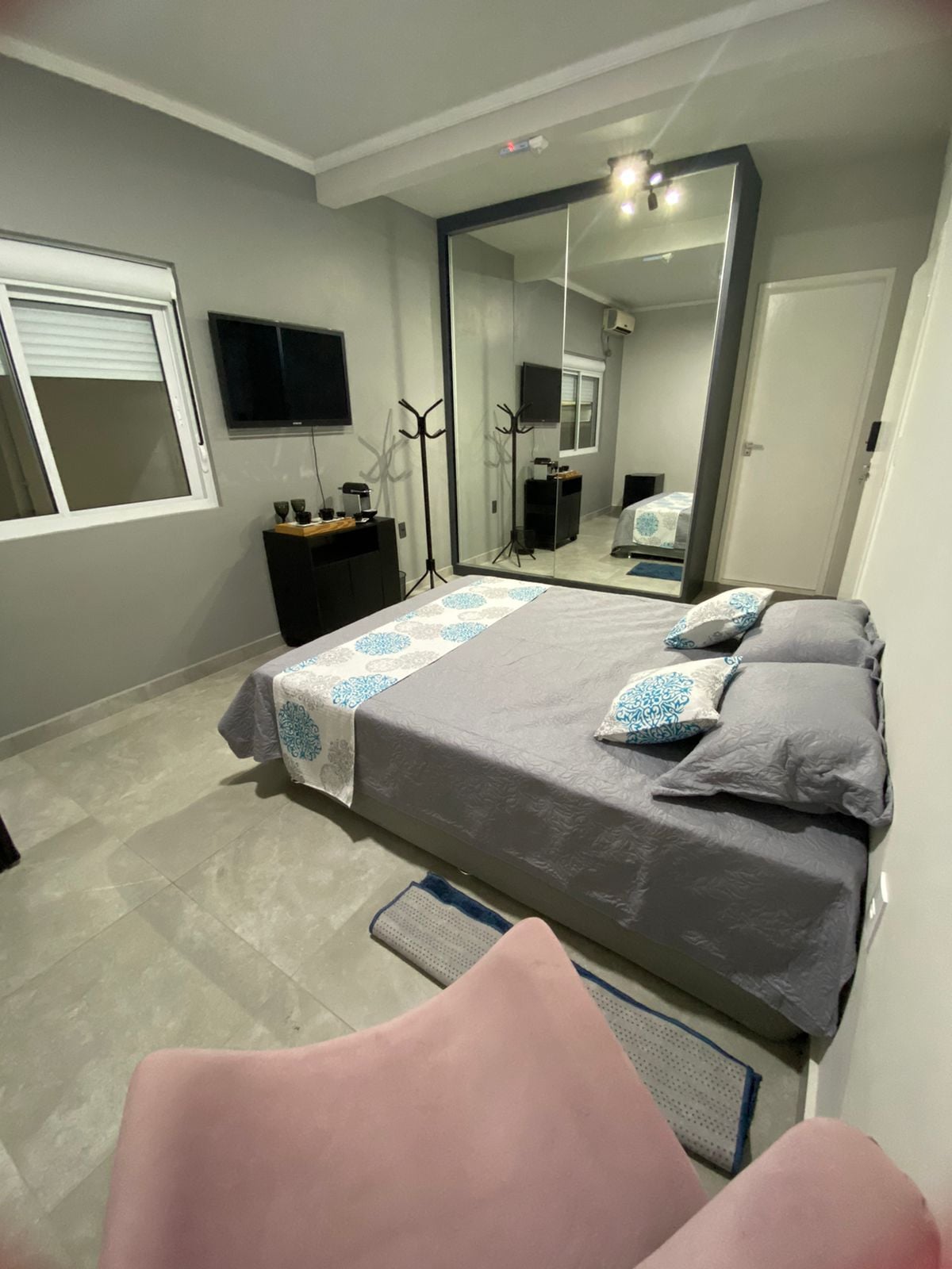 Habitación tipo estudio con camas cómodas, baño privado y cocina con artículos básicos. Capacidad para 5 personas cómodamente, hay posibilidad de colchón adicional, pero el valor sigue siendo POR PERSONA Equipado con artículos básicos de higiene, armario (que no debe llevarse a la playa ni retirarse del dormitorio) y utensilios de cocina. Siempre estamos a tu disposición para cualquier pregunta o ayuda. Cerca hay una parada de autobús, mercados y restaurantes. Es un anexo, vivimos en la casa principal. ¡Bienvenido!