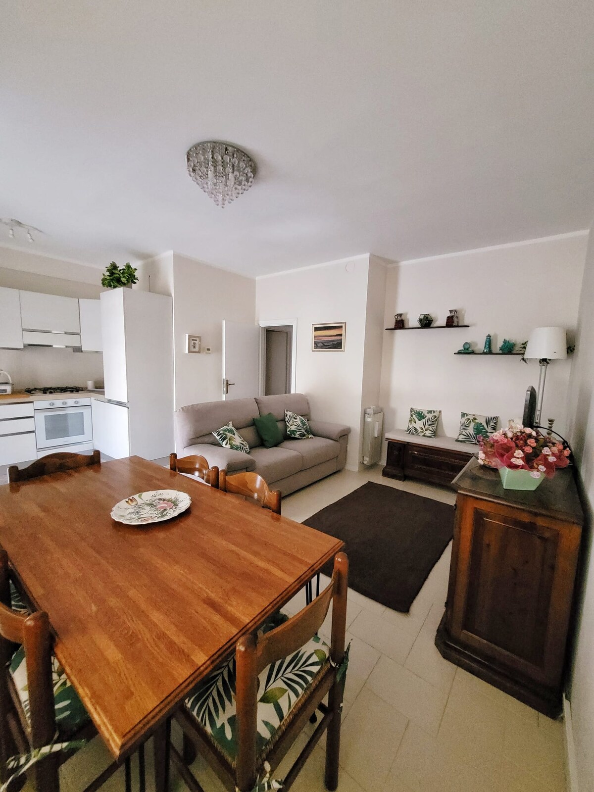 Este apartamento es perfecto para dos personas, pero también puede ser utilizado por una pareja con niños, ya que el sofá en la sala de estar se convierte en una cama tamaño queen en poco tiempo. El baño es espacioso y tiene una ducha y una bañera. La cocina-sala de estar es amplia y está equipada con estufa,horno y nevera grande y completa con todos los platos útiles durante la estancia. El apartamento tiene aire acondicionado y el estacionamiento (al aire libre) se encuentra inmediatamente debajo de la estructura cerca de nuestro jardín.