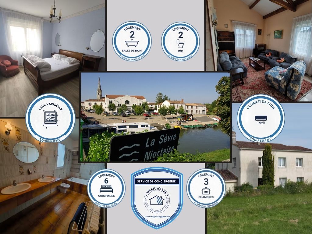 ¡Con etiqueta⭐️⭐️⭐️! En el corazón del pantano de Poitevin, una casa agradable ideal para los amantes de la naturaleza y el cambio de escenario, situada a orillas del río con más de 10 metros de fachada bordeada por la Venecia Verde. Un verdadero espectáculo cada mañana…Acceso y salida al agua privados. Ven a recargar las pilas en este insólito lugar en plena naturaleza salvaje. Un barco típico estará a su disposición para dar bonitos paseos en plena naturaleza. ¡La casa es ideal para una pareja con hijos o dos parejas de amigos!