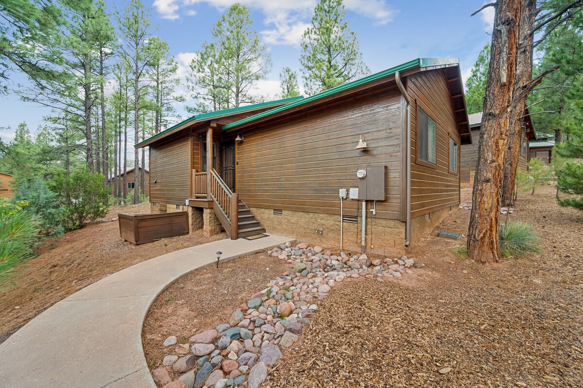Relájate en nuestra tranquila cabaña White Mountain de 2 camas y 2 baños en un lote de ½ acre. A solo 5 minutos del lago Fool Hollow para practicar kayak, pesca y paddle-boarding (¡te proporcionamos una tabla de paddle!). Cerca de restaurantes locales, caminatas panorámicas y a 1 hora de Sunrise Mountain para esquiar. Disfruta de una acogedora chimenea interior y una parrilla al aire libre, fogata, hoyo de maíz y herraduras. Calefacción, mini-split y aire acondicionado portátil para mayor comodidad durante todo el año. La diversión invernal incluye colinas para trineo, paseos a caballo y corte de árboles.