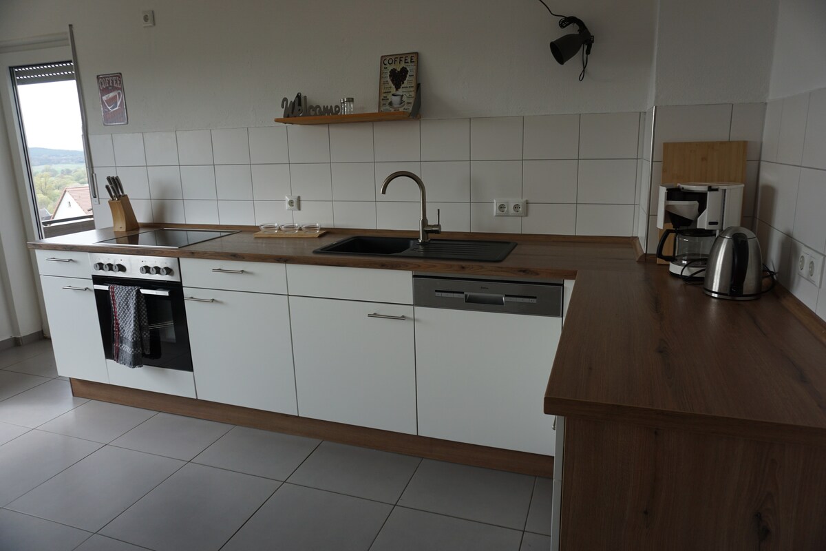 Situado a las puertas de la Suiza franconiana, este soleado apartamento con terraza ofrece todo lo necesario para desconectar después de un agotador día de trabajo o para disfrutar de un tranquilo descanso en familia. El apartamento, con entrada independiente, dispone de un dormitorio con cama doble (160 cm), un sofá cama en el salón para una persona, un aseo para invitados, un baño, una cocina con todos los electrodomésticos necesarios, incluida cafetera y una terraza. ¡Estaremos encantados de darle la bienvenida!