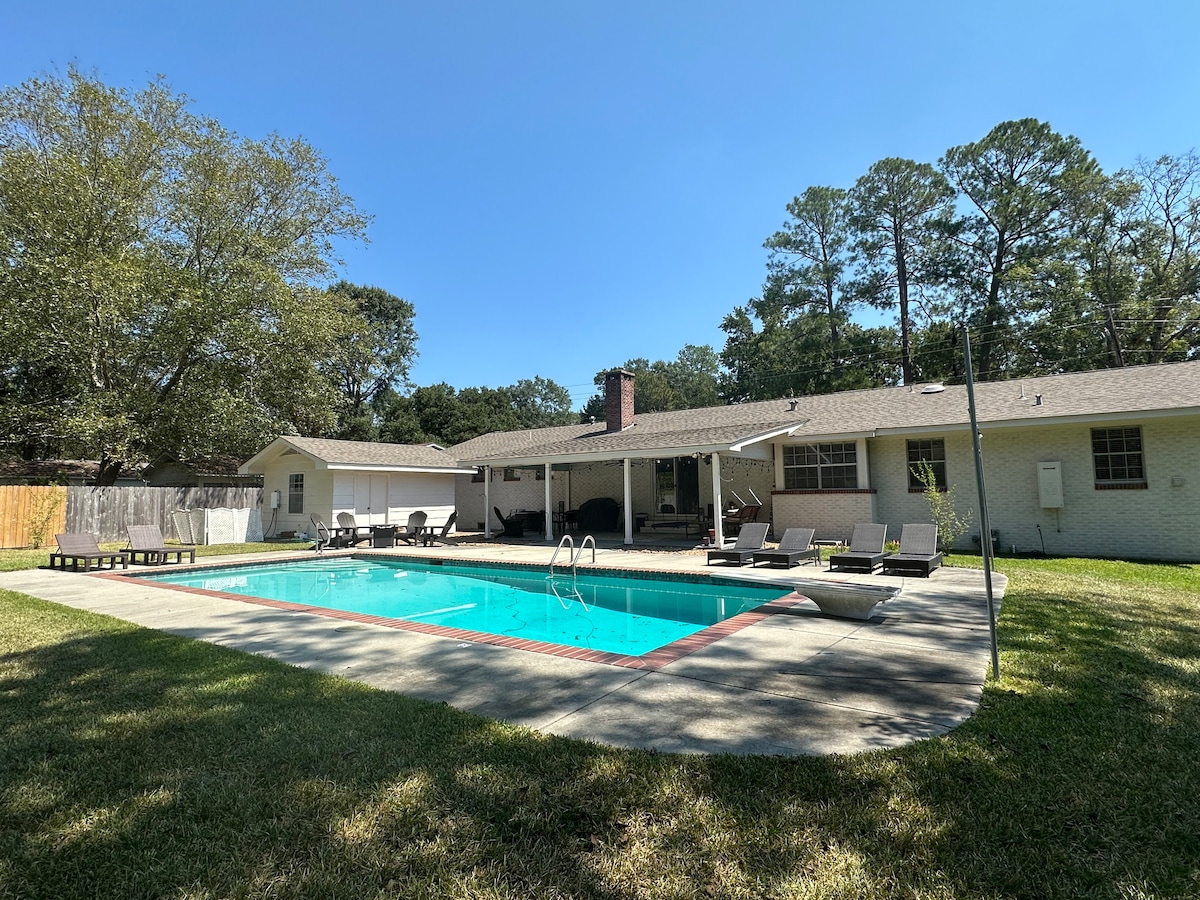Jacuzzi Sala de juegos con mesa de billar y juegos recreativos Piscina cerrada de octubre a abril. Habitación infantil temática de Harry Potter Cocina completa 2 camas tamaño king, 2 camas tamaño queen, 2 camas individuales TV en cada dormitorio más TV de 75 pulgadas en la sala de estar. Restaurantes y tiendas cercanas. brasero exterior ¿Necesitas aún más espacio? Hay un segundo Airbnb (The Guest House) disponible en la propiedad detrás de la piscina. Consulta mis otros anuncios para ver la disponibilidad de la casa de huéspedes. Ten en cuenta que el área de la piscina se comparte con la casa de huéspedes Airbnb.
