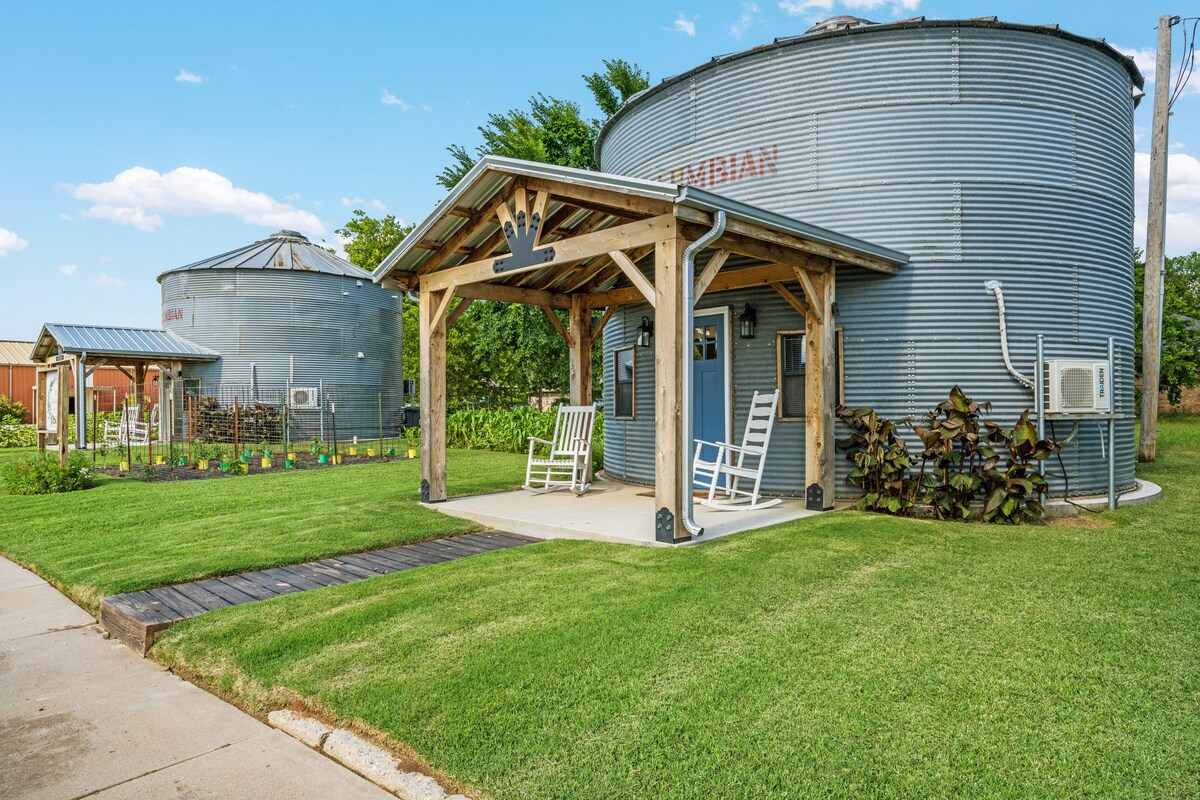 Ubicado en Elgin, Oklahoma, este granero convertido ofrece una experiencia única. A poca distancia en coche de Ft. Sill, Medicine Park y el Refugio de Vida Silvestre de las Montañas Wichita. Con comodidades modernas y un encanto rústico, este silo ha sido decorado con buen gusto y equipado con todos los lujos que necesitas para una estancia acogedora. Este encantador silo tiene capacidad para cuatro personas e incluye una elegante sala de estar, cocina totalmente equipada, comedor, un amplio dormitorio, acogedoras literas incorporadas y 1,5 baños.