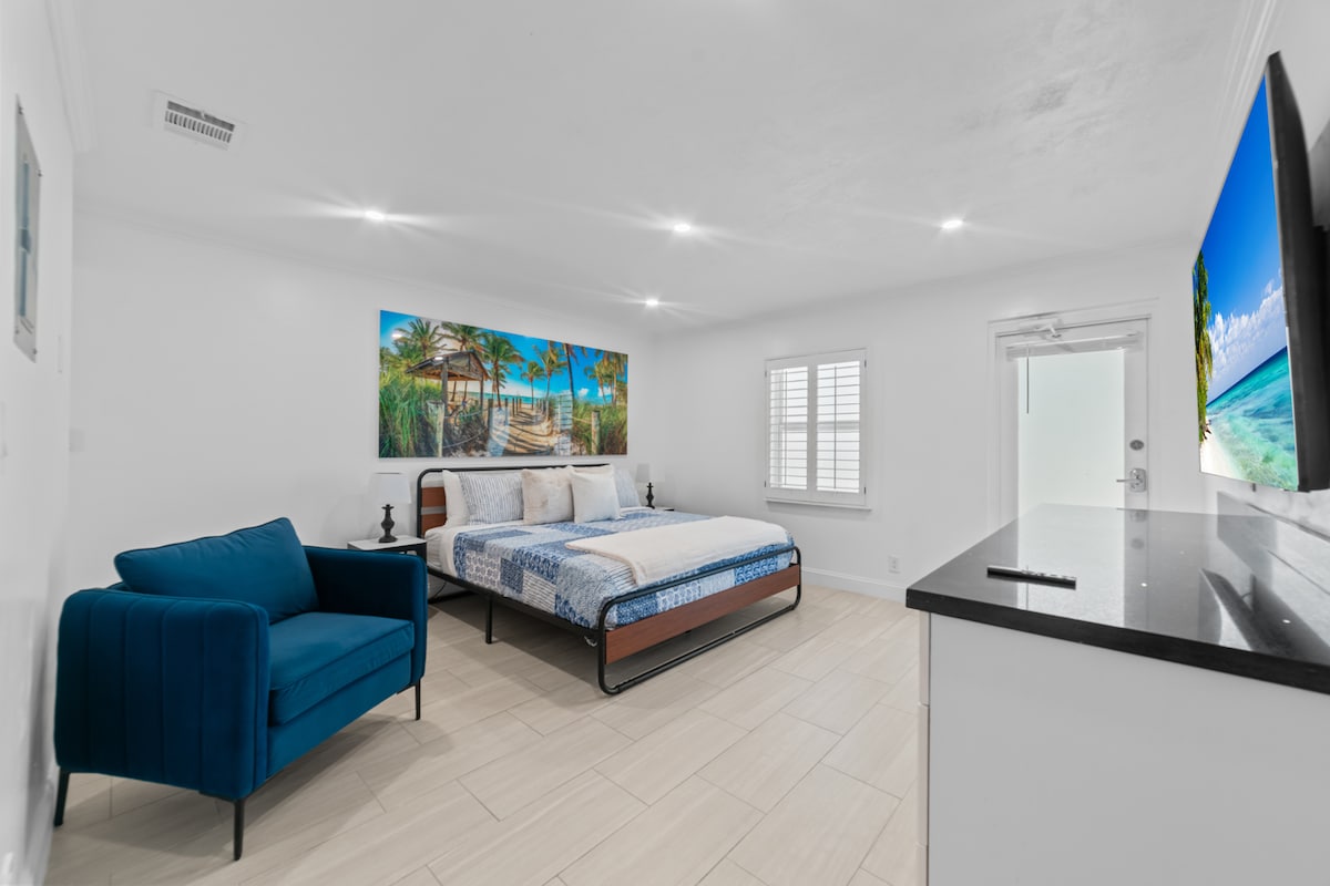 Located in the desirable Coral Ridge area, only 1.5 miles from Fort Lauderdale Beach. Walking distance to shopping, restaurants and entertainment - Season52, P.F. Changs, Blue Martini, Starbucks, Supermarket. Enjoy the peaceful ambiance of a boutique resort setting with private Marina. Relax at the pool, use the outdoor BBQ kitchen, go for a bike ride (2 bikes available). Perfect for couples, solo travelers, business, multi-generational families & groups (privatize the entire resort,7 units)