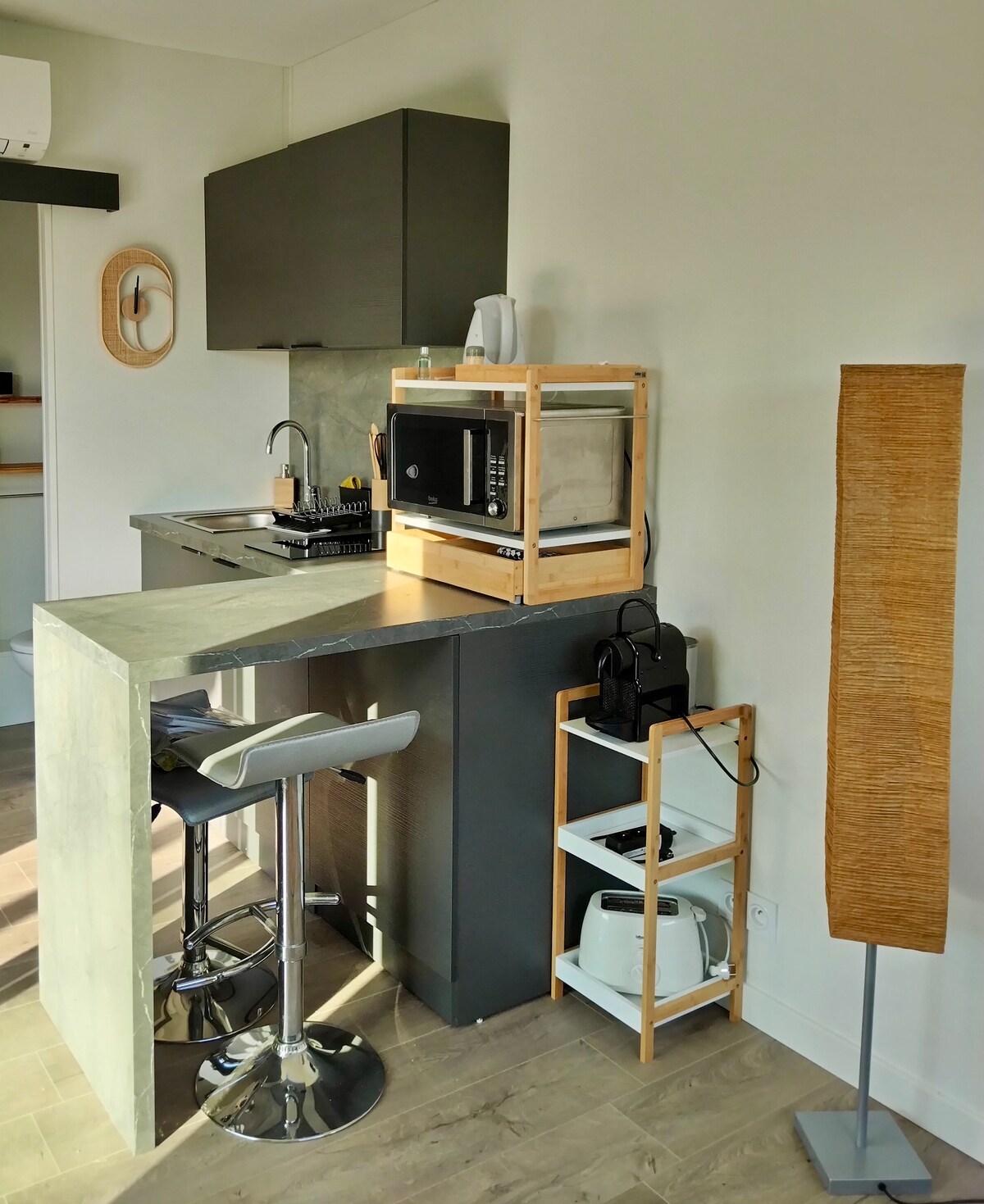 Espíritu mimoso para unas vacaciones románticas en las inmediaciones de La Rochelle y las islas de Ré, Oleron, Aix y el pantano de Poitevin. Encanto y elegancia para este alojamiento con estructura de madera respetuoso con el medio ambiente y perfectamente equipado. Un remanso de paz que incita a la relajación ( alojamiento en un callejón sin salida ) Llegada con total autonomía con caja de llaves Red de autobuses que va a La Rochelle a 300 metros