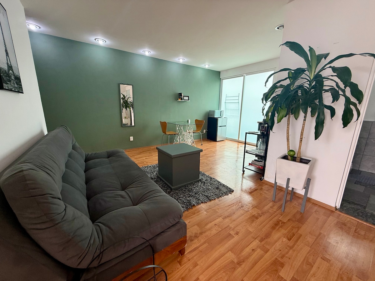 Bienvenidos a tu refugio de inspiración. Nuestro departamento combina comodidad y diseño minimalista y moderno en una ubicación ideal para una experiencia tranquila, segura y muy centrica. Disfruta de espacios cómodos y pensados para tu bienestar, creando una atmósfera perfecta para tu descanso y para la productividad. Relájate con un té o café cada mañana, o prepara un delicioso desayuno en nuestra cocina equipada. ¡Te esperamos para una estancia memorable!