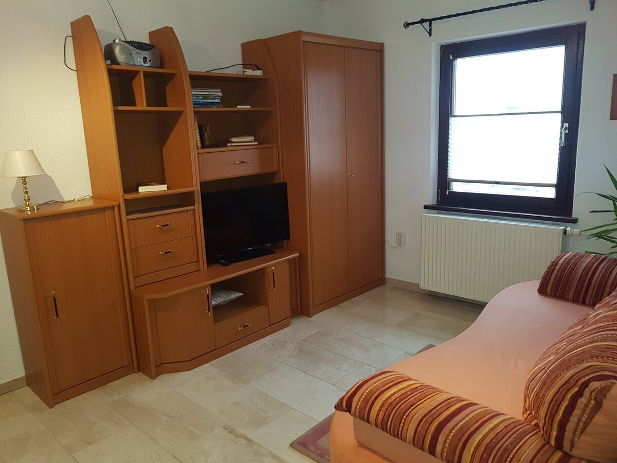 Ofrecemos un cómodo apartamento amueblado de 1 dormitorio para 1-2 personas al sur del bosque de Thuringian. Nuestro apartamento es muy cómodo y también tiene calefacción por suelo radiante y wifi. La habitación es adecuada para relajarse, dormir y trabajar. Tiene un sofá acogedor para un máximo de 2 personas. La cocina tiene un toque rústico con una mesa pequeña y dos sillas. Al baño pertenece una nueva ducha, un lavabo y un inodoro. En verano también puedes utilizar la terraza para disfrutar del sol justo afuera del apartamento. En verano, podrás explorar innumerables senderos en el bosque de Turingia. Relájate y disfruta de los pubs tradicionales circundantes con cocina tradicional turingiana y francocónica. En invierno, hay muchas pistas de esquí y patinaje de fondo. Puedes practicar tus deportes de invierno activamente o simplemente dar un paseo relajante en el aire fresco y crujiente del invierno. Para los esquiadores de fondo hay una variedad de dificultades disponibles, desde senderos sencillos hasta desafiantes. Para esquiadores y snowboarders, las pistas cercanas también se clasifican de sencillas a desafiantes. En la arena de esquí Silbersattel en Steinach, a solo 15 minutos en auto de nosotros, puedes tomarte los deportes de invierno, incluso si solo eres principiante. La zona ofrece además la residencia de Coburgo (Baviera), el Upper Main-Therme Bad Staffelstein (Baviera) y el Meiningen Theater, que merecen una visita. Dado que vivimos al lado del apartamento y estamos muy familiarizados con el área, también te damos información sobre actividades al aire libre y otras atracciones en el área. Si tienes alguna pregunta antes de reservar, no dudes en ponerte en contacto con nosotros en cualquier momento. ¡Saludos cordiales!