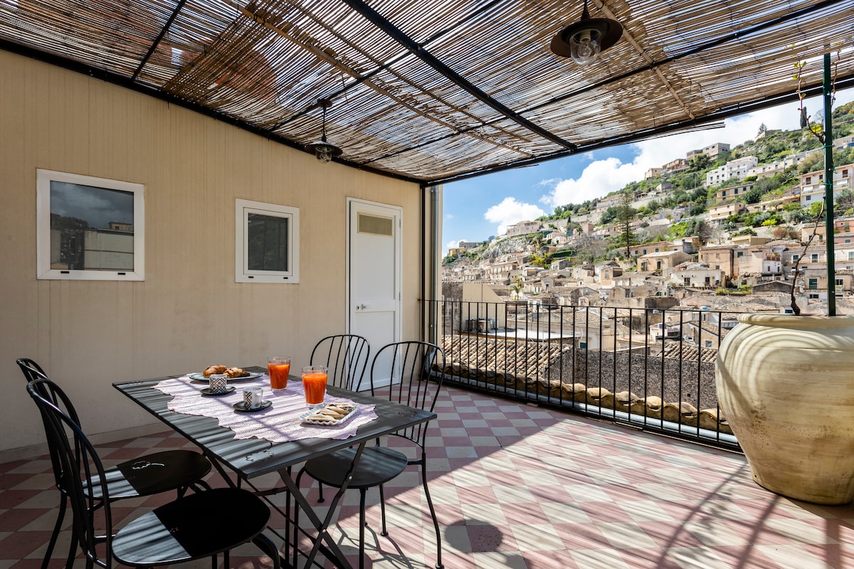 El apartamento 'A Mecca, ubicado en una casa histórica renovada en completa armonía con la estructura original, a tiro de piedra de la calle principal y de la Catedral de San Giorgio, te permitirá sumergirte en el corazón de la ciudad, explorar el centro a pie y apreciar las tradiciones culinarias y artesanales locales. La gran terraza con magníficas vistas al barrio de Cartellone te revelará la belleza de Módica iluminada con las luces de la noche, dándote el ambiente de una Sicilia atemporal.