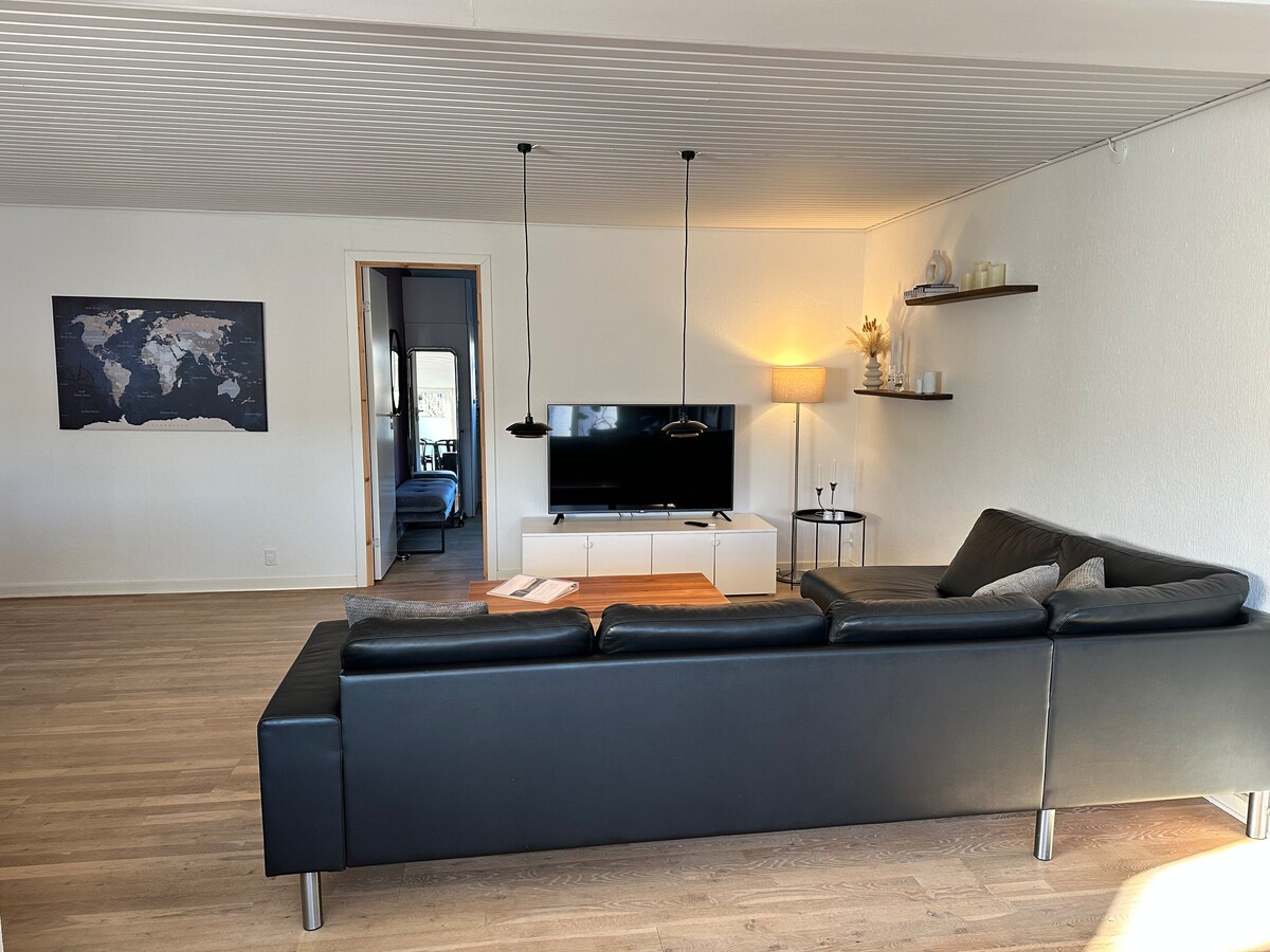 Disfruta de una estancia tranquila y céntrica en nuestro apartamento recientemente totalmente remodelado de 75 m². Ideal para personas que viajan solas o parejas que exploran Odense. LO más destacable: - Dormitorio grande con cama tamaño king. - Cocina totalmente equipada. - Televisor Samsung Frame de 75 pulgadas. - Almacenamiento amplio - Juego de patio al aire libre. - Acogedor hygge danés en todas partes. - Colchón inflable opcional queen - Entrada sin llave Este es nuestro hogar personal en Dinamarca, cuidadosamente renovado, y estamos encantados de compartirla contigo.