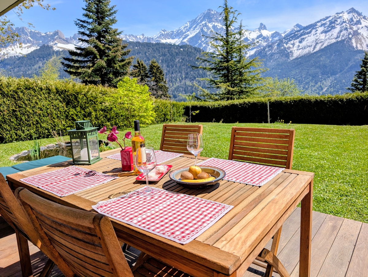 Cambia de aires y ven a descubrir nuestras hermosas montañas. En la planta baja del chalet, ofrecemos un apartamento muy bonito. Incluye un dormitorio con cama de matrimonio y una cama supletoria, un baño con una ducha grande, una cocina pequeña y bien equipada y una sala de estar con TV. En la planta baja hay una terraza amueblada con impresionantes vistas a los Alpes, situada al sur, en el límite del bosque, muy tranquila.