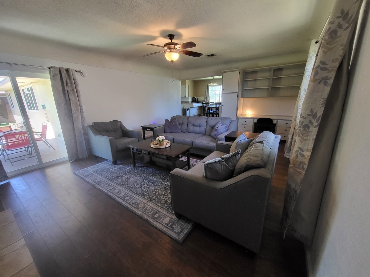 Mejorado y espacioso 2 dormitorios/1 baño, sala de estar y comedor separado, electrodomésticos, muebles todos nuevos, a 10 minutos del aeropuerto, gran acceso (70 minutos) a los parques nacionales (Yosemite, Sequoia, Kings Canyon, etc.), patios delanteros y traseros vallados, wifi de alta velocidad de 300 MB, suelos de madera, TV de 65 pulgadas con DIRECTV + Netflix, parrilla de propano para barbacoa, todos los elementos esenciales de cocina, incluida licuadora y cafetera. 1 cama tamaño queen, 1 litera completa y 1 sofá cama completo. 3 coches aparcados de forma segura en la entrada dentro de la valla de la puerta.
