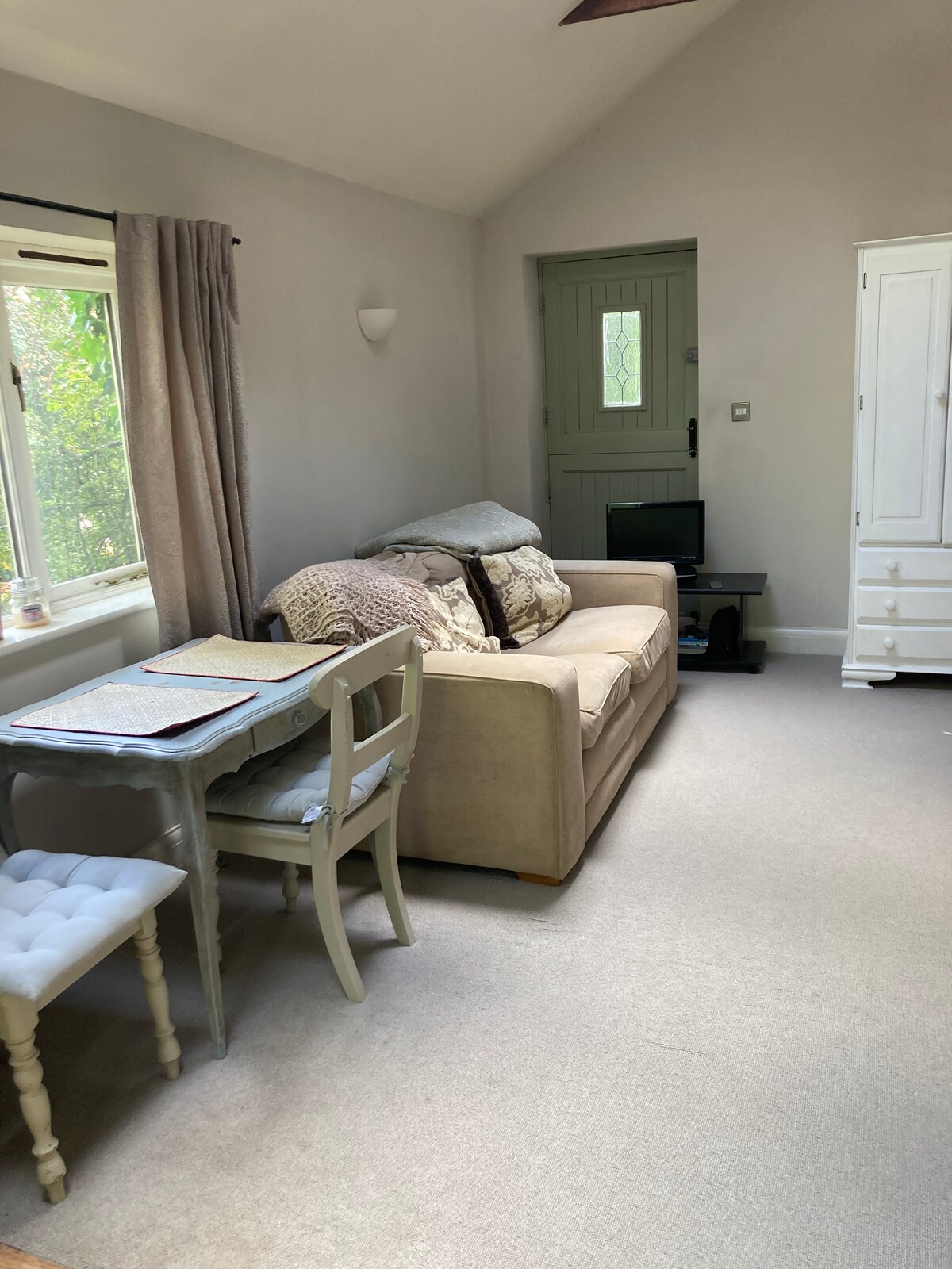 Este es un anexo independiente muy acogedor, que consta de un dormitorio doble con baño privado. Hay hervidor de agua, mininevera, tostadora y microondas, pero no hay otras instalaciones para cocinar. Se proporciona una toalla por persona. Croissants recién hechos y mermelada casera incluidos y llevados a tu puerta por las mañanas en ciertos días de la semana. Esto depende más bien de la hora a la que tenga que salir por la mañana, pero a menudo podemos acordar una hora. Por favor, pregunta.