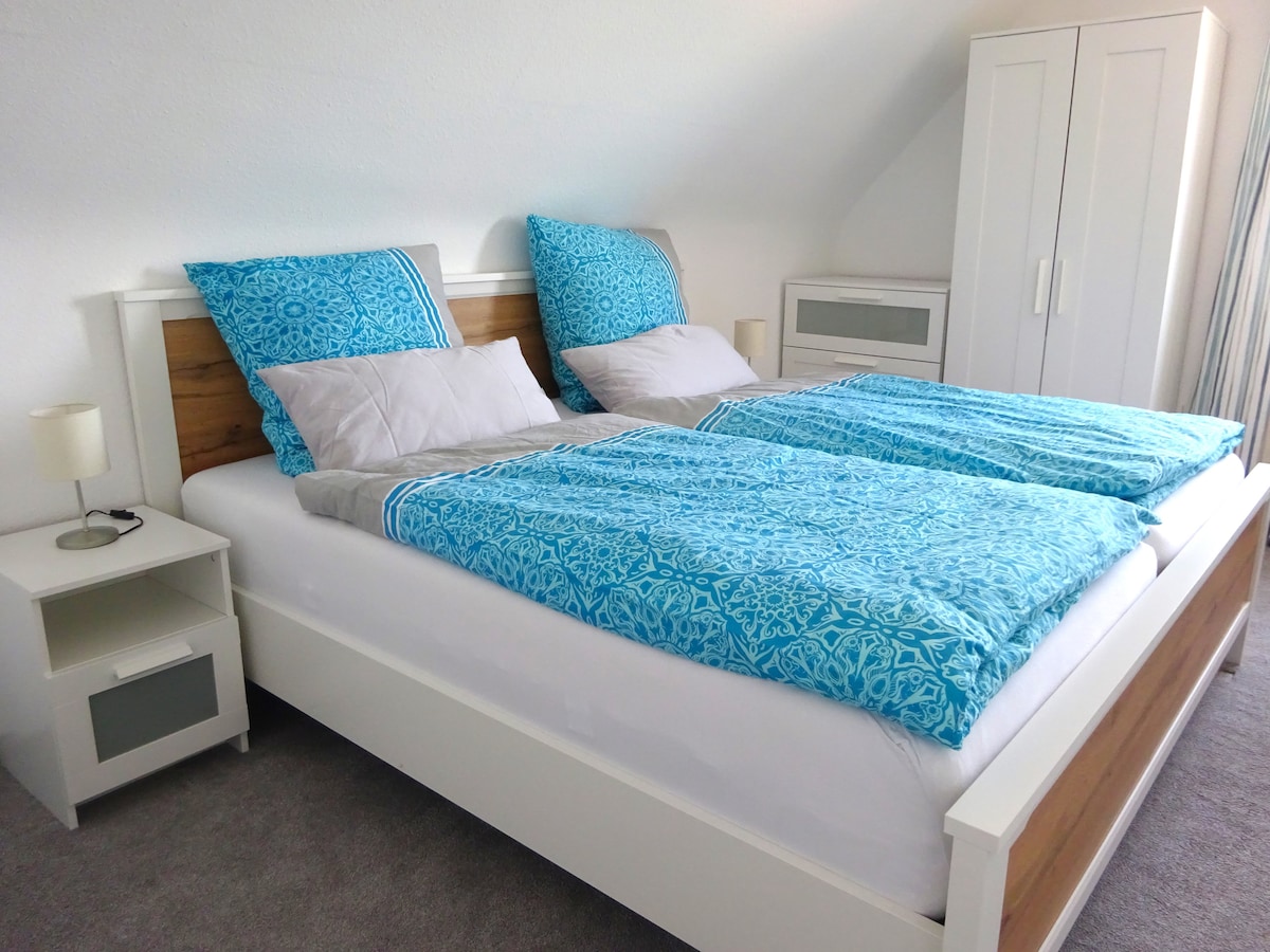 Departamento céntrico, elegante y tranquilo en el segundo piso, a 5 minutos de la estación de tren de la ciudad. Hay un Rewe (hasta las 12:00 p. m.), oficina de correos y panadería. Además de la cama de somier, hay un sofá cama de alta calidad con un colchón completo (160 cm de ancho). Hay un lavado moderno. El garaje individual con electricidad. La puerta está en el patio. Dos balcones te invitan a desayunar y a quedarte. El lago con el parque costero está a 100 metros, el ferry y los barcos están a 400 metros. ¡Ubicación perfecta!