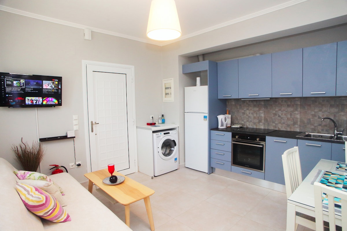 Todos los apartamentos tienen una sensación espaciosa y mucha luz, baño grande, cocina bien equipada, cómodas camas dobles con colchón anatómico. Todas las habitaciones de los apartamentos están totalmente climatizadas y tienen ventiladores de techo en los dormitorios. El diseño combina materiales naturales, colores claros con un «toque griego». El patio trasero es para todos nuestros huéspedes. Hay una amplia zona de aparcamiento gratuito a 150 metros. Disfruta paseando por los hermosos callejones, prueba las delicias locales y mucho más. ¡Te damos la bienvenida a Eriel, donde te sentirás como en casa!