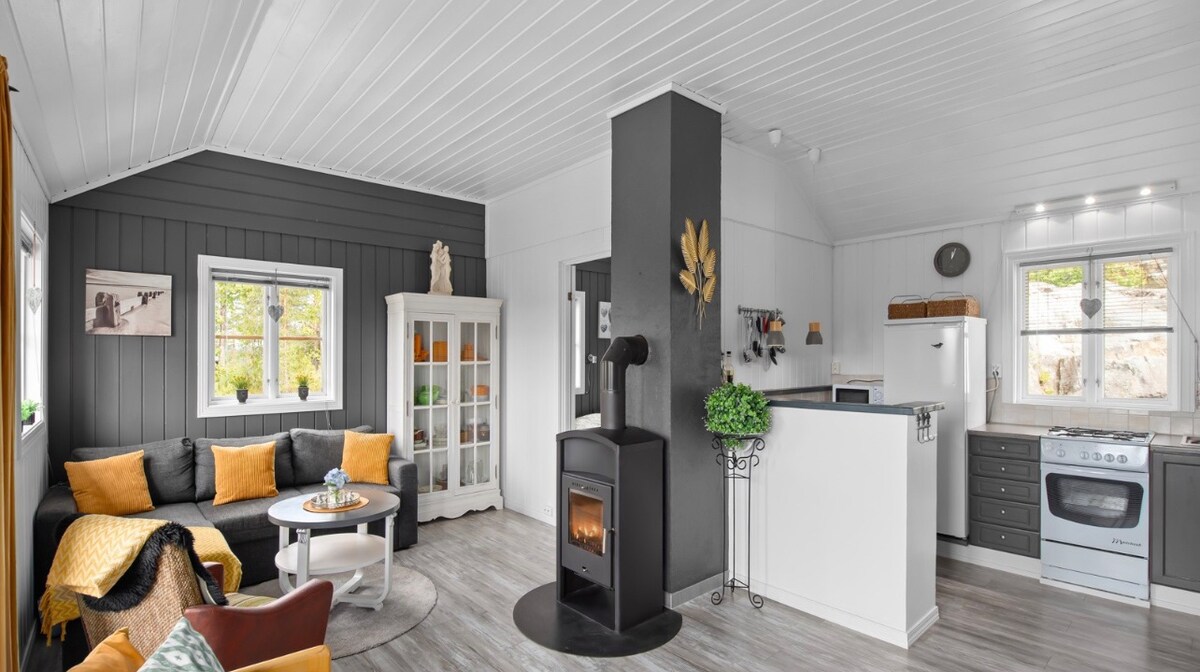 Acogedora e idílica casa de campo con una gran parcela vallada en una zona tranquila de casas de campo cerca del bosque con buenas oportunidades para hacer senderismo, agua dulce con bonitas playas poco profundas para nadar y pescar en Haukomvannet, a poca distancia a pie. Aquí te despiertas refrescado con los sonidos de la naturaleza por la mañana, y a menudo puedes disfrutar de la vista de ciervos pastando en el exterior del dormitorio con la taza de café en la cama. Incluye ropa de cama y toallas. Bote de remos incluido. Perfecto para una familia de 4. La parcela vallada de 1500 m² lo hace ideal para ti con un perro.