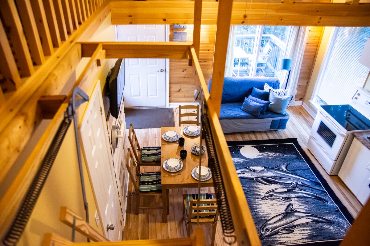 El Evergreen es una acogedora y moderna casa de madera de 4 estaciones con 2 dormitorios y una oficina. ¡Esta casa familiar cuenta con una vida de concepto abierto y un tranquilo patio privado de 2,5 acres con jacuzzi! Fogata, piscina sobre el suelo, barbacoa y glorieta protegida abierta según la temporada. ¡El Evergreen es un espacio seguro e inclusivo donde todos son bienvenidos! Esta es una casa antigua, no un hotel; ¡nos encantan sus imperfecciones y esperamos que tú también! Leña no incluida, barbacoa no disponible en los meses de invierno. Nuestra piscina se vuelve a abrir a finales de la primavera de 2025.