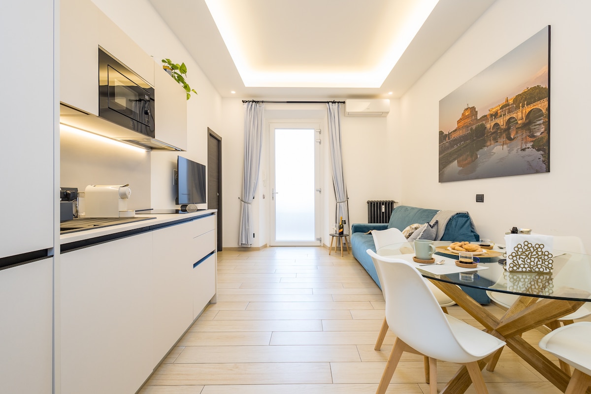 Casa de vacaciones en planta baja, 40 metros cuadrados. Posibilidad de Self Check-in. A 300 metros del Metro y 100 del tranvía. Es fácil llegar a los principales lugares turísticos como el Coliseo, el Vaticano y la Fontana de Trevi. Equipado con todas las comodidades, reformado y pensado hasta el más mínimo detalle. Cocina completa, lavavajillas, microondas, horno, vajilla y cubertería, bañera, ducha, bidet, aire acondicionado, 2 televisores! ¡No falta nada!