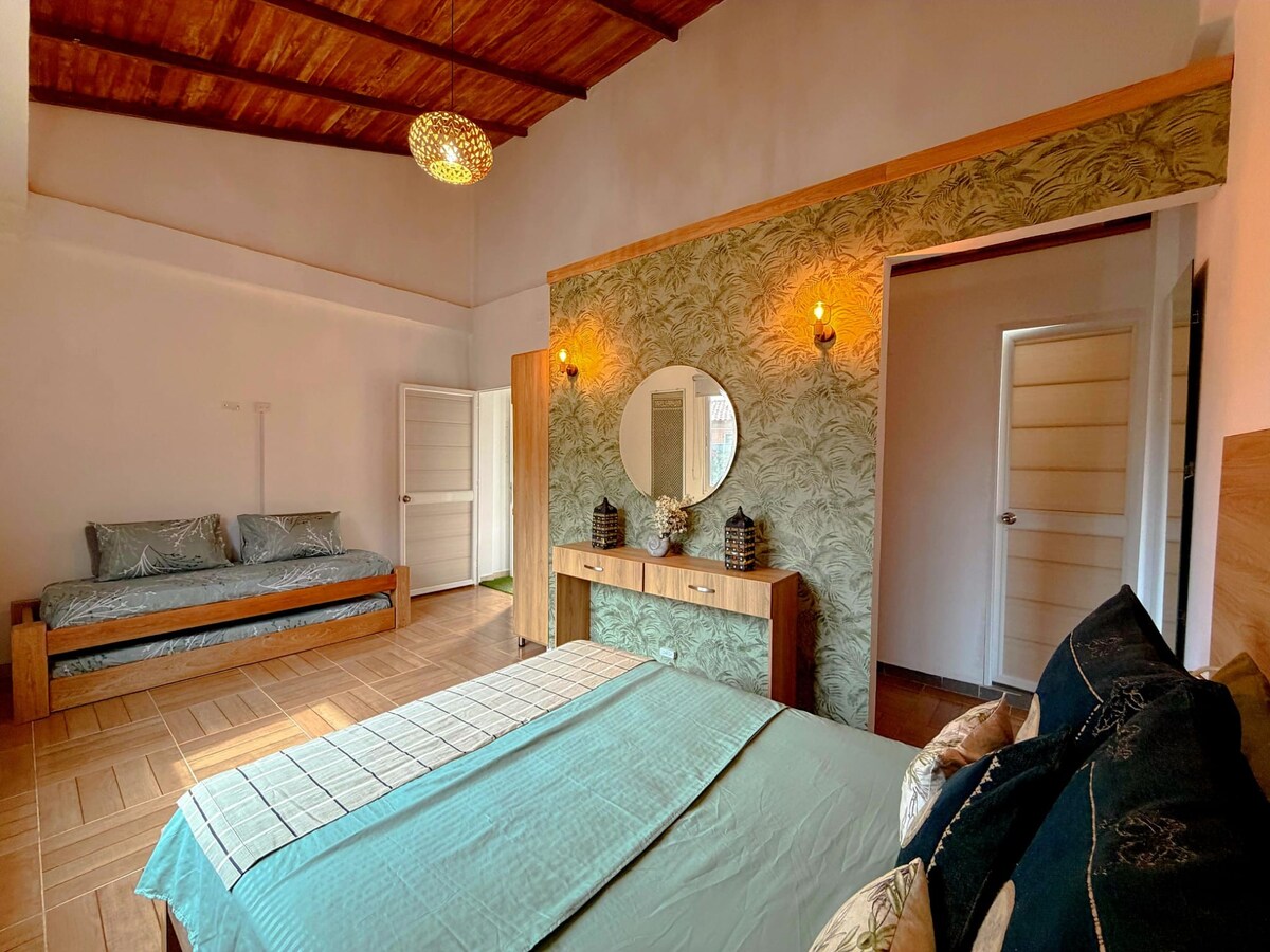 Es un lugar para sanar, inspirarte, olvidar o recordar, o simplemente buscar tranquilidad y goce. La Casa Amarilla, en madera, combina un estilo rústico con un estilo local. Por sus ventanas se cuela la imponente vista del mar, la vida sencilla de algunos lugareños y pululan los cangrejos en su patio. Hay 2 bicicletas a tú disposición y en la playa puedes tomar las lanchas a Isla Fuerte para realizar careteo y disfrutar de sus playas y comida. Podemos orientarte para mejorar la experiencia.