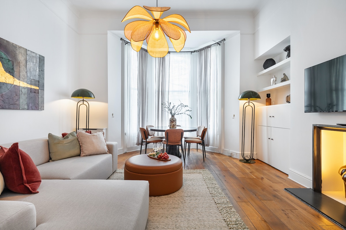 Disfruta de Londres y relájate hasta altas horas de la noche en nuestro precioso apartamento. Esta luminosa casa en Chelsea es el lugar perfecto para descansar después de días llenos de aventuras. La luz natural del día se filtra a través de las grandes ventanas mientras te acurrucas en el sofá frente al televisor para ver una película. La cocina está totalmente equipada para que puedas preparar una comida casera para tus seres queridos. Hay una mesa de comedor que se puede utilizar como un práctico escritorio para aquellos que trabajan de forma remota y necesitan ponerse al día con correos electrónicos importantes.