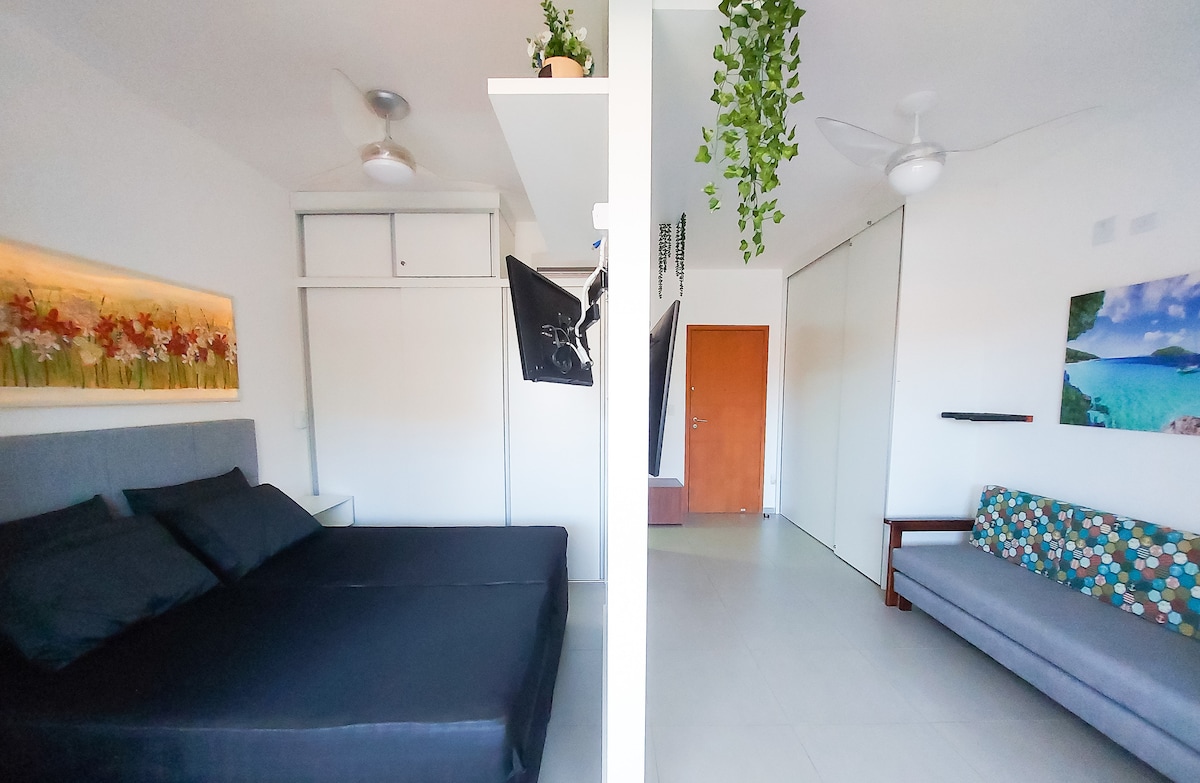 Estudio completo e aconchegante para seu descanso e lazer em ambiente clean para reequilibrar as energias. Todas as comodidades e até tomadas com usb para carregar aparelhos eletrônicos, internet para Home office, rede para a varanda e máquina de lavar para minimizar seu trabalho. Condomínio com segurança e tranquilidade. Churrasqueira no condomínio , e você pode usar. Tudo isso a 500m da praia do Itaguá e Orla , bares , restaurantes, sorveterias, e lojas,. É onde tudo acontece