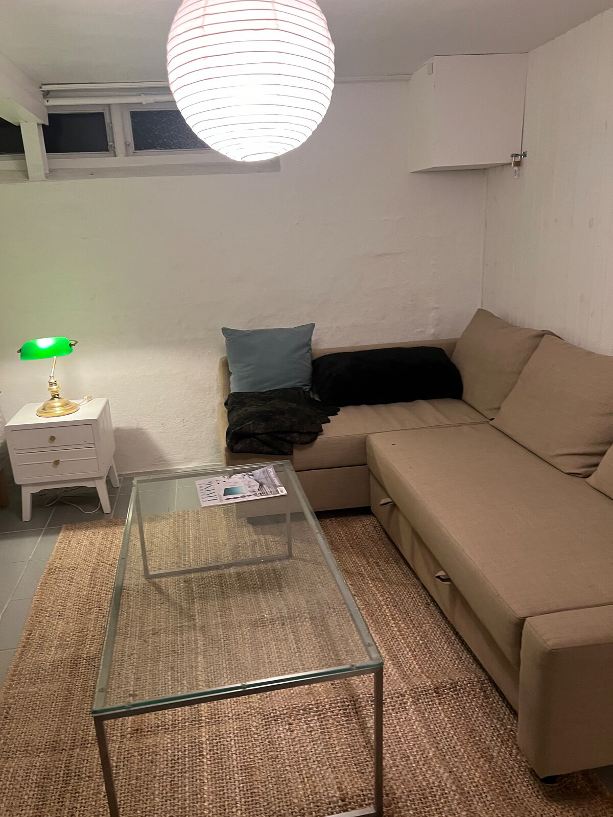 OBS! Huset er ikke blevet sat ordentligt op til udlejning herinde og der mangler bl.a. en masse billeder. Vi lejer primært gæsteværelse i underetagen ud. Men du er velkommen til at skrive, hvis det har din interesse. Familievenlig villa i tre plan med 8-9 sovepladser + 2 opredninger. 3 badeværelser, stort køkken-alrum, legeværelse, træningsrum og vaskefaciliteter. Have med gynger, rutsjebane, trampolin, sandkasse og solrig terrasse. Tæt på bus, legeplads, skov og å.