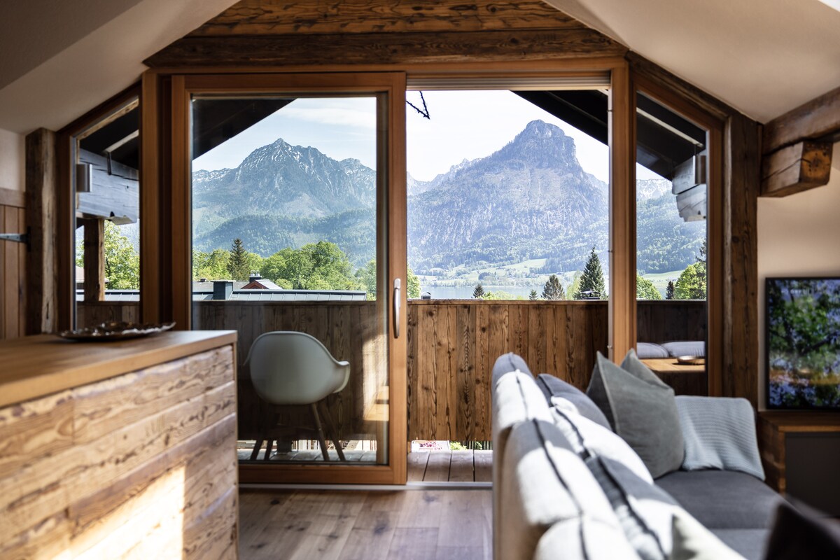 A 50 m de la orilla del lago se encuentra la «Sonnengütl», una antigua granja reformada rodeada de un hermoso jardín, orientada al sur y al lago, situada en Wengl, una zona tranquila y muy soleada en St.Gilgen. El ático de esta casa privada se ha convertido en un apartamento muy especial y amplio de 115 m², con una generosa sala de estar-comedor con ventanales que dan al balcón cubierto, coronado por una fantástica vista del lago y las montañas.