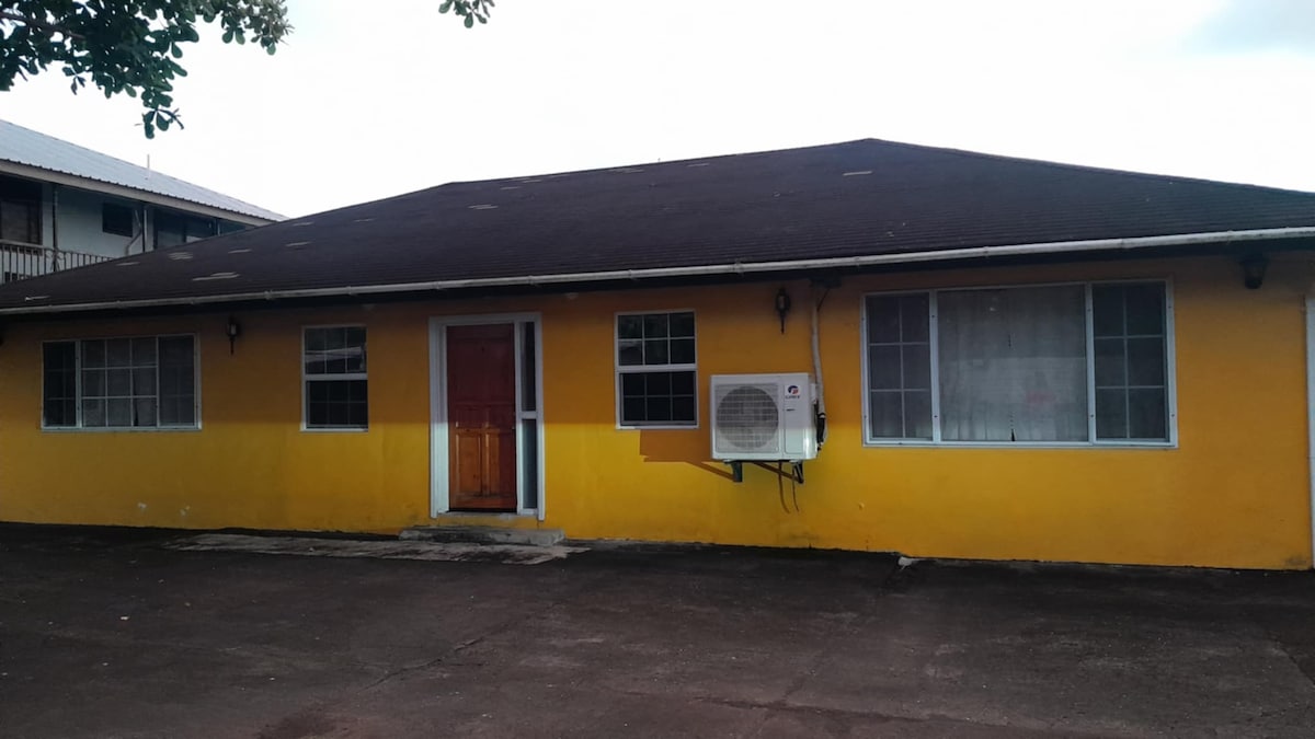 Cozy clean studio apartment decorated with a collection of local art. Unit is fully self-contained with kitchenette and bathroom (with shower) and a queen sized bed and king-sized pull out couch. Equipped with modern amenities like A/C, hot water, wifi, TV w/Roku, and a coin-operated washer/dryer. Centrally located in a private and secure compound, very close to the Airport, golf course, major stores, and popular eateries.
