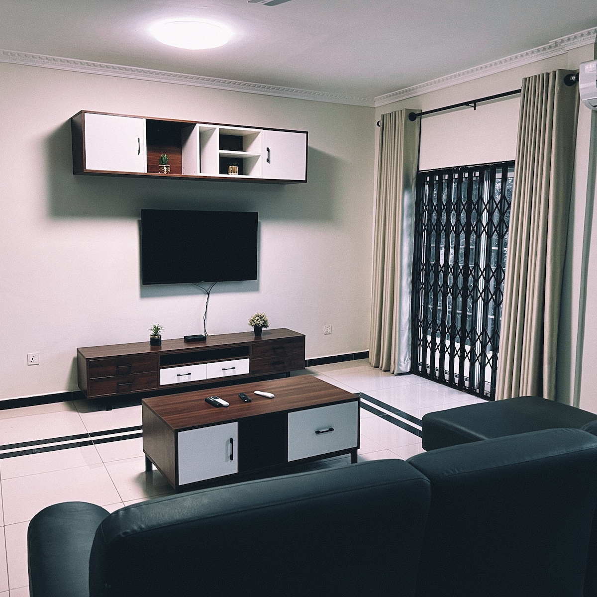 Nuestras hermosas y tranquilas instalaciones esperan tu llegada. Tenemos internet de fibra de banda ancha (wifi) disponible en todas las habitaciones. Todas las habitaciones tienen baño privado y están equipadas con aire acondicionado y TV inteligente Samsung UHD 4K de 55 pulgadas con canales digitales para el entretenimiento de tu habitación. La sala de estar cuenta con un televisor inteligente Samsung Curve 4K UHD de 65 pulgadas con canales digitales compatibles con BOSE Home Theater. Estamos en la carretera Haatso Atomic, cerca de Shaq Express y del centro de eventos Red Carpet, Haatso, Westland.