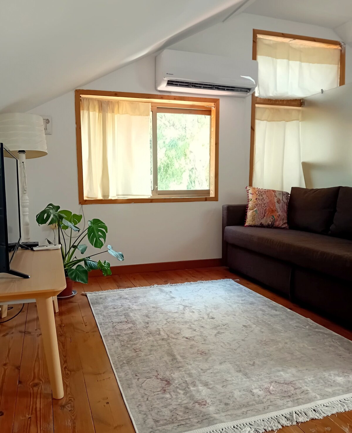 Un apartamento estudio agradable y luminoso con un bonito balcón grande, cómodamente ubicado en el centro de Ra'anana, a pocos pasos de la calle principal, Ahuza. El departamento contiene una cama doble (tamaño: 160 x 190 cm) y cocina pequeña, TV por cable por cable, espacio de trabajo con cable LAN y wifi. Se proporcionan ropa de cama y toallas adicionales previa solicitud. El anfitrión es un israelí nativo y habla con fluidez inglés y español.