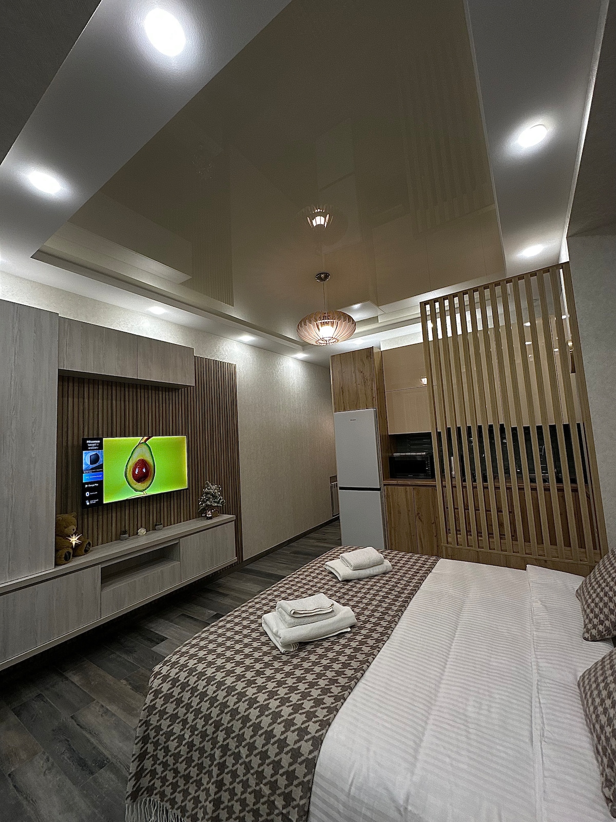 Escape to your private entertainment haven in Kutaisi! Whether it's raining or scorching hot outside, our apartment is the perfect retreat to relax, unwind, and have fun, located just a ten-minute walk from the city center. Step into a stylish and comfortable apartment designed for both relaxation and entertainment. The space is your personal cinema and game room, all in one.