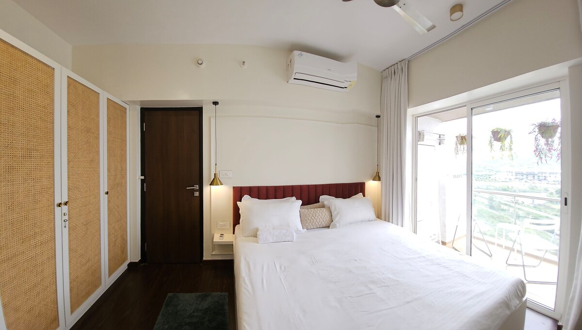 Welcome to a calm and comfortable 1BHK studio ideal for couples, families, solo travelers, friends, and remote workers. Whether you’re here for a quiet weekend, a work-from-home stay, or a longer peaceful break, this home offers the right balance of comfort, greenery, and convenience. The private balcony overlooks lush green surroundings near the golf course. With fast WiFi, OTT apps, and a quiet gated environment, it’s easy to slow down and feel at home.