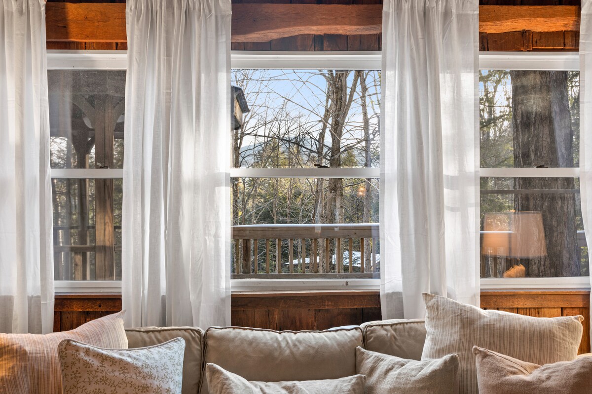 ¡La hermosa y nueva casa del árbol Riverbed con sauna privada y un impresionante jacuzzi nuevo! ¡Vistas durante todo el día y atardeceres increíblemente impresionantes! ¡La montaña Stratton está justo en tus pies con un arroyo balbuceante que se convirtió en un río furioso en primavera! Hermosos bosques y senderos para explorar. ¡Impresionante línea de cresta fuera de las pistas de esquí de Magic Mnt! ¡Cerca de la ciudad para ir de compras rápidas y cafeterías! ¡esquí Xcountry o raquetas de nieve o camina por nuestros senderos arreglados! ¡WIFI RÁPIDO, amantes de la naturaleza y un paraíso para los observadores de aves! @bentapplefarm