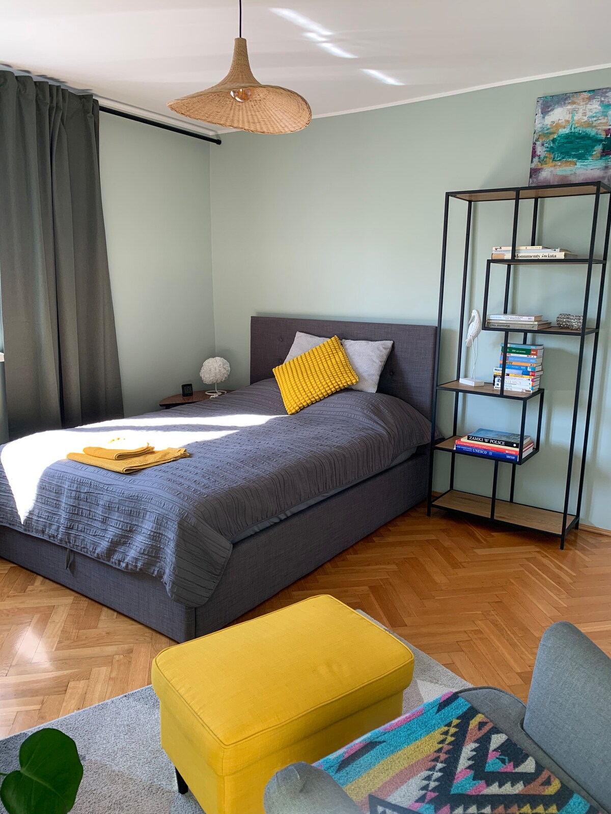 Departamento muy bonito. Hay una cocina con una sala de estar, dormitorio, baño y un balcón. Detrás del edificio hay un pequeño bosque, así como un bonito parque. A unos 200 metros del apartamento hay un centro comercial y un cine. Para uso de los huéspedes, hay un estacionamiento subterráneo con un lugar exclusivo. En la cocina para mayor comodidad al huésped hay personal básico de cocina como personal de cocina como café, té, té, azúcar, sal, aceite, especias, etc. El silencio nocturno se aplica entre las 22:00 y las 06:00, por lo que no es adecuado para las fiestas.