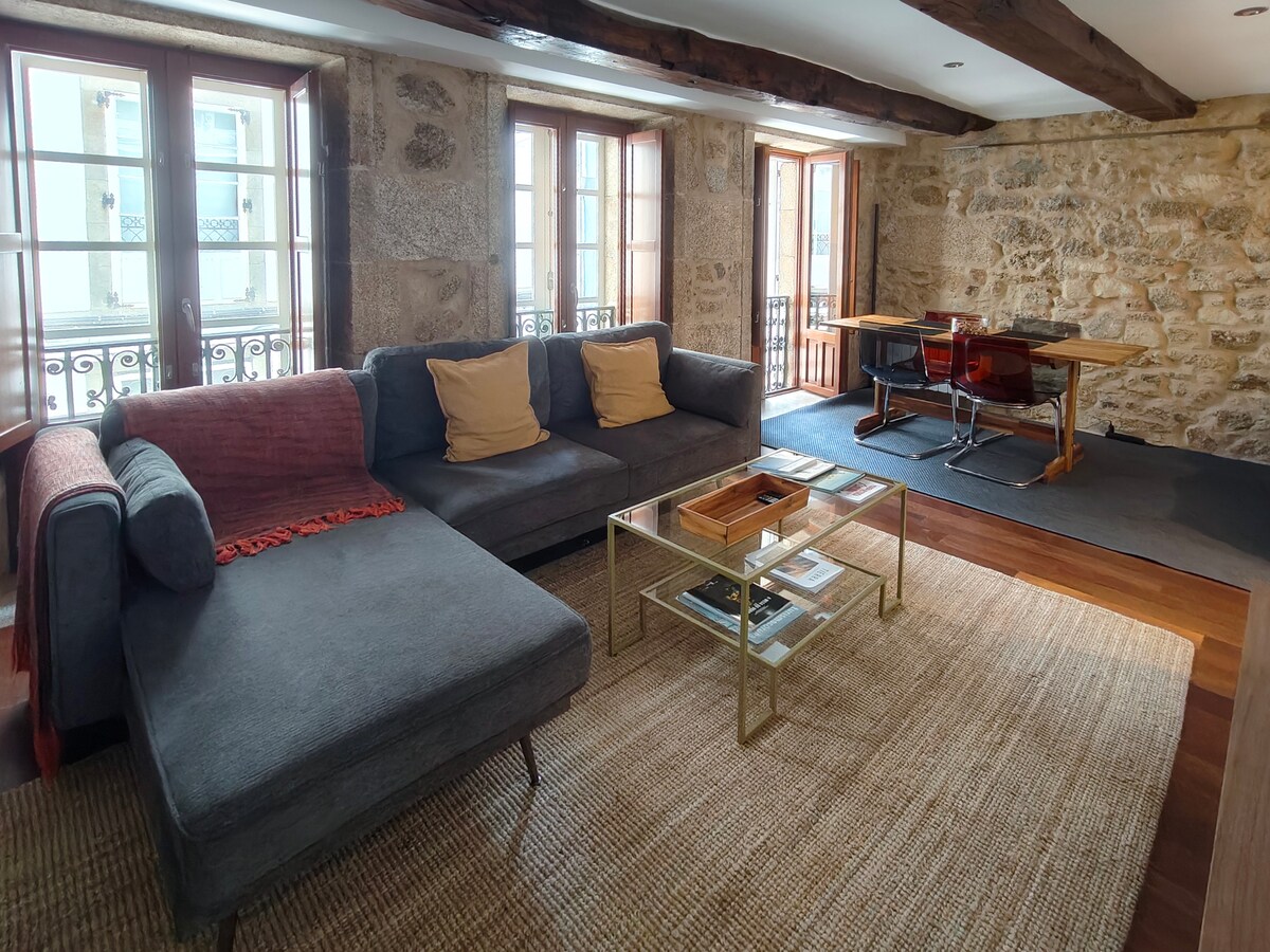Bienvenido a un apartamento único en el casco antiguo de A Coruña, en la emblemática Rúa Cordonería. Este espacio, en un edificio de 1870, ha sido cuidadosamente restaurado, conservando sus muros de piedra y vigas de madera, integrados en un diseño contemporáneo. Cuenta con una exclusiva terraza privada, ideal para disfrutar del aire libre en un entorno histórico. Su ubicación privilegiada te permitirá explorar lo mejor de la ciudad, combinando historia, diseño y confort moderno. ¡Te esperamos!