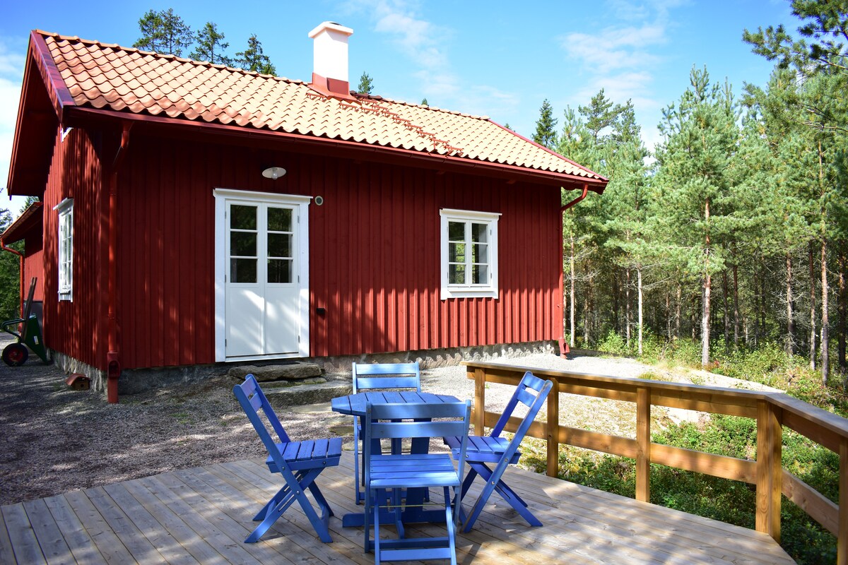 Pequeña cabaña en una granja pequeña La cabaña está al final de la carretera, con el bosque como vecino más cercano. Muchos senderos y cerca de un pequeño lago donde se puede pescar. Terraza amueblada en la parte trasera y delantera. Si quieres alquilar un barco, puedes hacerlo por una pequeña cantidad. Para aquellos que estén interesados en la pesca, hay muchos buenos lagos en un radio de solo una milla. También hay varias reservas naturales en la zona. A 3 km de la tienda de comestibles, a 15 km de las tiendas, a 20 km de la reserva natural de Store Mosse.