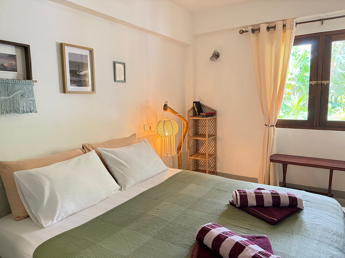 Bienvenido al acogedor primer piso de Susha Villa, ubicado en la tranquila zona turística de Hikkaduwa. Esta encantadora villa de madera cuenta con ventanas de parrilla y pisos de baldosas para una estancia cómoda. Ofrece dos dormitorios, un baño y una acogedora sala de estar-comedor, junto con una pequeña cocina para comidas ligeras. Ubicado en una calle tranquila cerca de la laguna, está a poca distancia a pie de restaurantes, tiendas y mercados de pescado. Nota:Los huéspedes deben subir escaleras para acceder al primer piso. ¡Disfruta de tu estancia en Susha Villa!