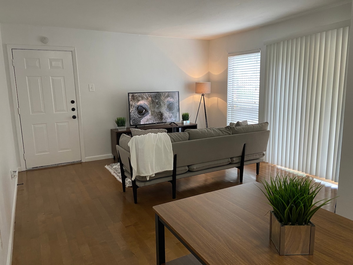Te damos la bienvenida a tu oasis urbano. Ubicado en el vibrante distrito Far North/ Galleria de Dallas, este elegante apartamento de estilo loft de 1 dormitorio es la escapada perfecta para parejas, viajeros solitarios o familias que buscan explorar el vibrante entorno. Entra en una sala de estar luminosa y espaciosa con una decoración moderna, asientos cómodos y un ambiente acogedor. La cocina totalmente equipada está lista para tus aventuras culinarias. Disfruta de las comidas en la mesa del comedor o con el café de la mañana