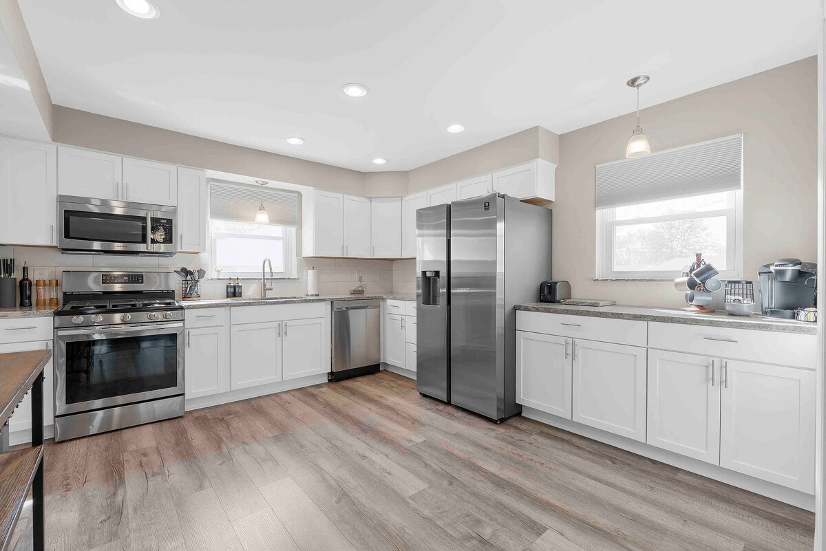 Una casa unifamiliar recién reformada de cuatro dormitorios y dos baños, que ofrece mucho espacio para relajarse y disfrutar del encanto de Grove City. Una oficina tranquila en la planta superior es el entorno perfecto para trabajadores remotos o profesionales de la salud que viajan. Nuestra casa también cuenta con una cocina totalmente equipada, perfecta para preparar una comida casera, y una guarida con juegos, TV y un acogedor sofá para pasar las noches en familia. Disfruta del amplio y privado patio trasero, equipado con asientos en la terraza para relajarte al aire libre.