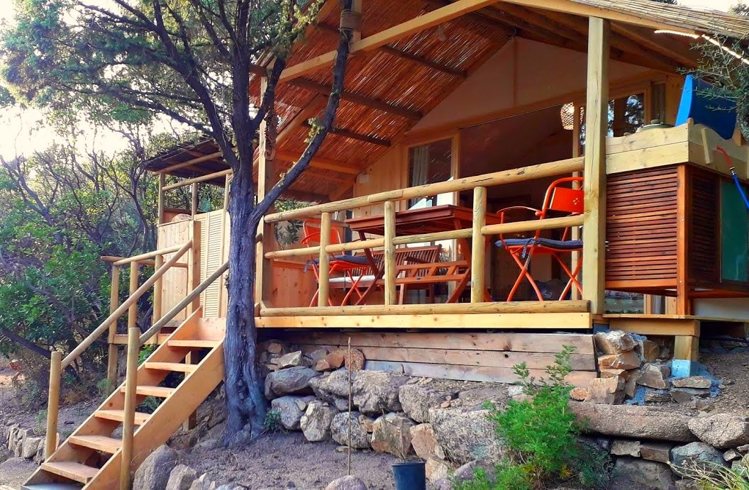 Tiendas amplias y cómodas con cama de matrimonio inmersas en la campiña virgen de Gallura a 6 km de Palau y Cannigione y a pocos minutos en coche de las playas del golfo de Arzachena. Ubicación ideal para quienes desean disfrutar de unas vacaciones en contacto directo con la naturaleza, lejos del bullicio pero sin renunciar a la comodidad y la privacidad. Los baños son para uso exclusivo de las tiendas y se encuentran a unos 30 metros de distancia. El desayuno se sirve al aire libre en la zona común de la casa.