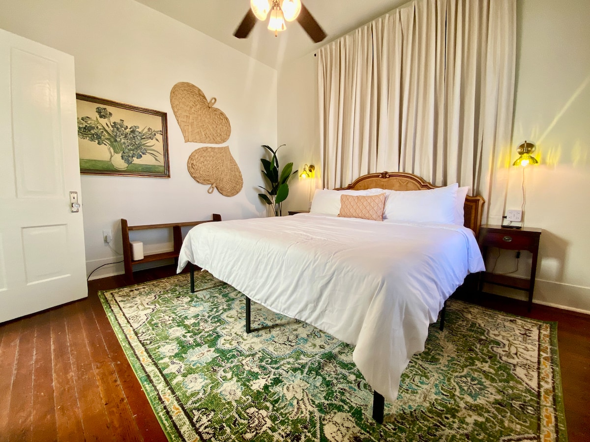Butterbee Hideaway: justo al lado de la ruta del desfile a lo largo del 25 para el Mardi Gras, ¡pero sigue siendo tu centro tranquilo para unas excelentes vacaciones en Galveston! Una pequeña casa histórica con grandes ventanales, paredes de colores y decoración curada para cuando quieras descansar y una ubicación céntrica para caminar o conducir fácilmente a restaurantes, bares, desfiles y atracciones.