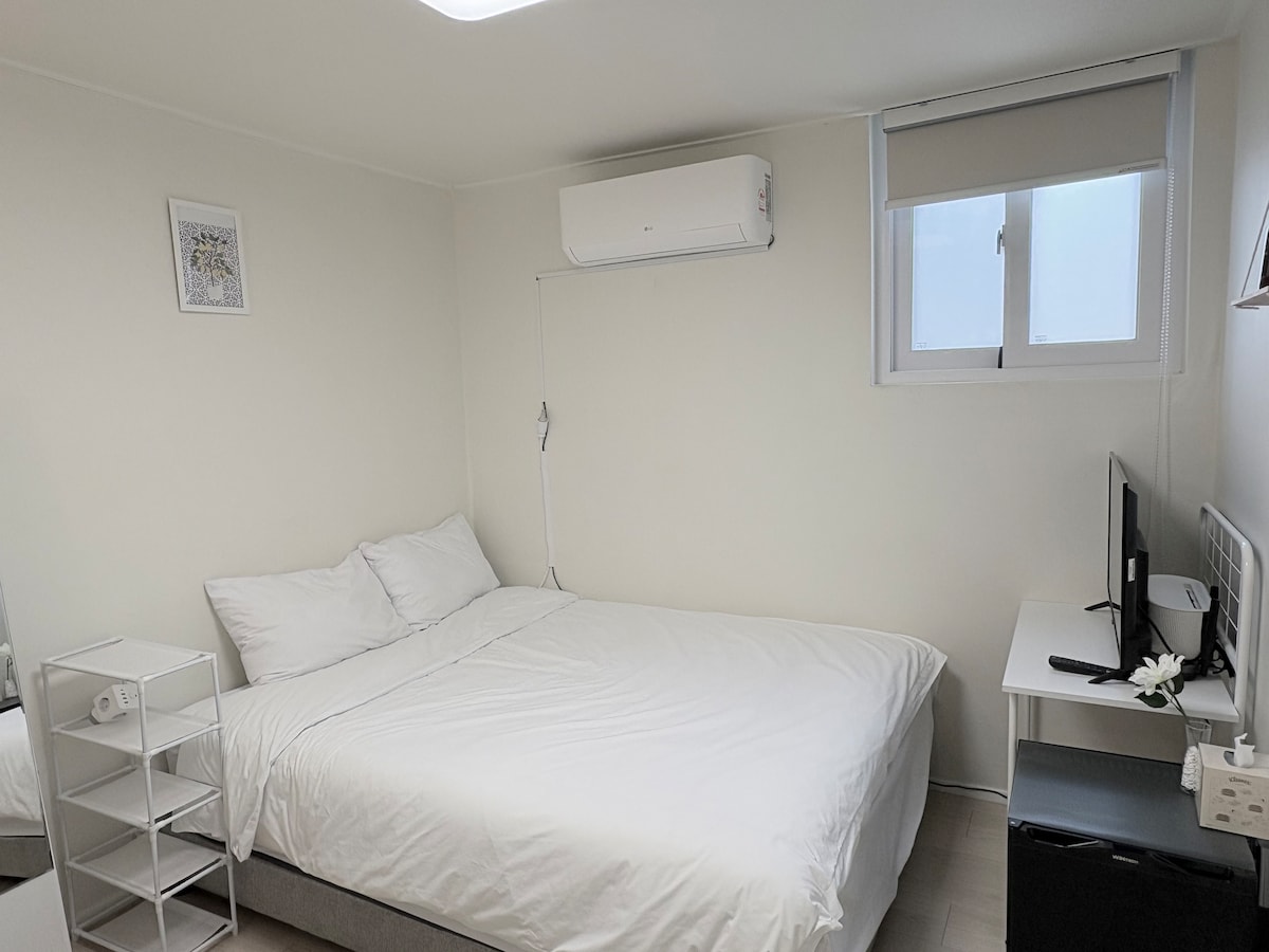 Habitación de 24,75 metros cuadrados, cama de 135*200, escritorio de 1070*700, almacenamiento de equipaje. - Funcional, vajilla sencilla, TV inteligente de 50 pulgadas - 56 minutos en autobús desde el aeropuerto de Incheon hasta la puerta principal del alojamiento (incluidos 6 minutos a pie) - Un lugar al que puedas ir caminando desde tu alojamiento Daiso, Olive Young, Times Square), - Hay una estación de Yeongdeungpo en la línea 1, una estación de Munrae en la línea 2 y una estación de Yeongdeungpo Market en la línea 5. - fácil de mover a atracciones