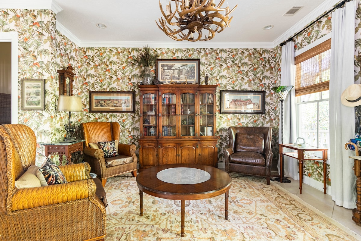 ¡Te damos la bienvenida a nuestro elegante refugio urbano! Experimenta el lujo en esta nueva casa de carruajes diseñada a medida con arte único (algunos de los cuales son míos) y muebles elegantes. El estacionamiento fuera de la calle y la ubicación del carril ofrecen una privacidad difícil de encontrar en el distrito victoriano. Los techos altos dan una sensación de amplitud mientras te relajas en muebles lujosos y disfrutas de las comodidades modernas. ¡Ideal para una escapada romántica y punto de partida para explorar el encanto de Savannah! SVR 02919