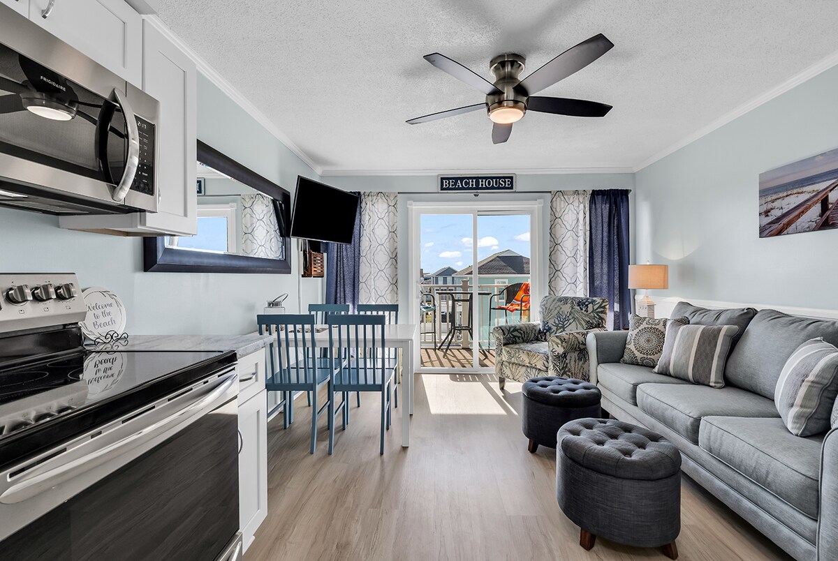 Condominio recientemente renovado, cuyo edificio y piscina comunitaria se encuentran directamente en las arenas del Océano Atlántico. Se puede disfrutar de magníficas vistas e impresionantes amaneceres desde su terraza privada. TODAS LAS SÁBANAS ESTÁN INCLUIDAS junto con sillas de playa, sombrilla y tabla de bodyboard. Capacidad para 4 personas, tiene 2 televisores y todos los electrodomésticos nuevos. Idealmente ubicado entre Myrtle Beach y Murrells Inlet, a poca distancia a pie de bares, restaurantes y entretenimiento locales. *Fotos de Surfside Realty MGMT Co*